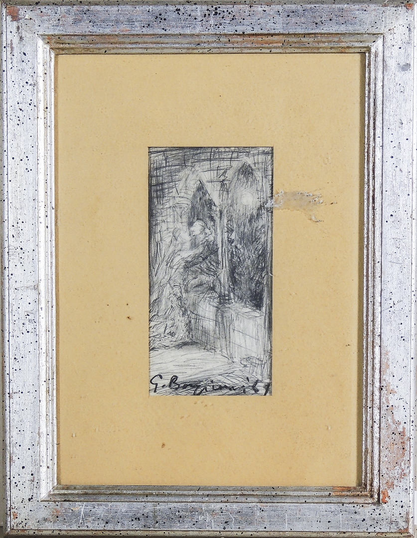 GUIDO BORGIANNI (1918-2011) Romeo and Giulietta - Romeo and Juliet matita su carta - pencil on paper, firmato e datato 69, in cornice cm 16x8