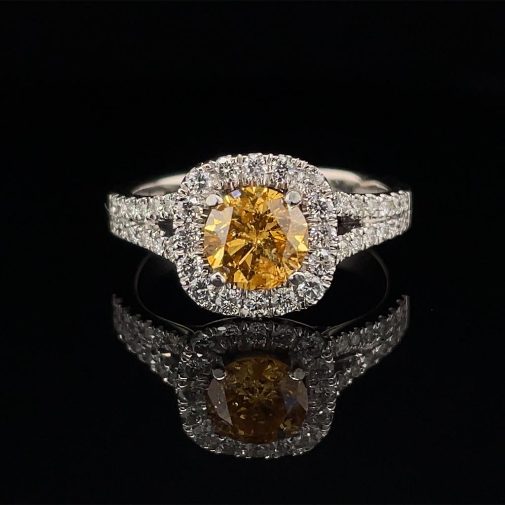 ANELLO IN ORO BIANCO 14K 5.03 GR CON DIAMANTE FANCY GIALLO ARANCIO INTENSO 1.14 CT + BRILLANTI PER 0.32 CT CERTIFICATO GIA - RNG20605