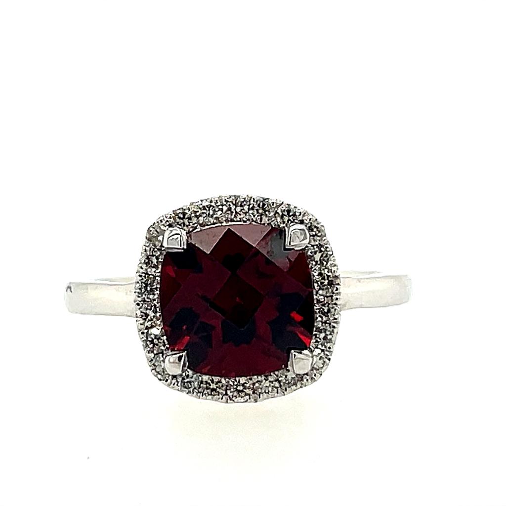 ANELLO IN ORO BIANCO 14K 3.62 GR CON GRANATO 2.72 CT + BRILLANTI 0.22 CT TOTALI F/VS6.5 CERTIFICATO ID - A2460