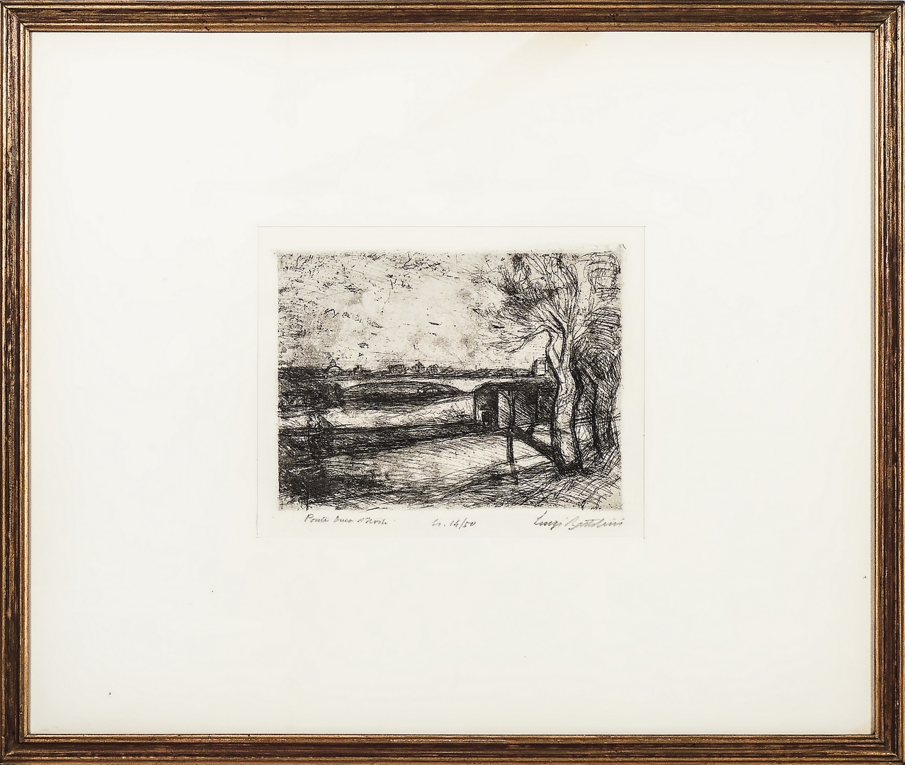 LUIGI BARTOLINI (1892-1963) Ponte Duca D'Aosta acquaforte - etching, es 14/50, firmato e titolato, in cornice cm 18x24