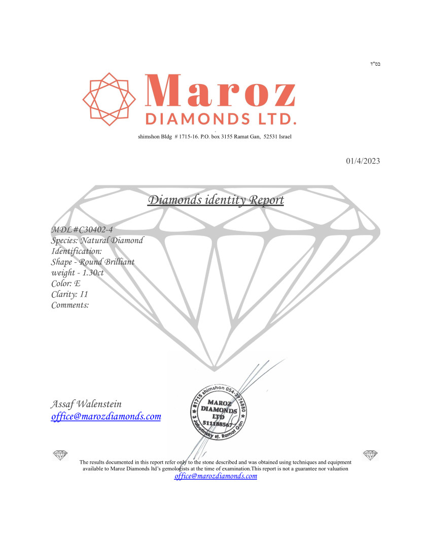 DIAMANTE 1,3 CT E - I1 - TAGLIO BRILLANTE - CERTIFICATO ID - C30402-4