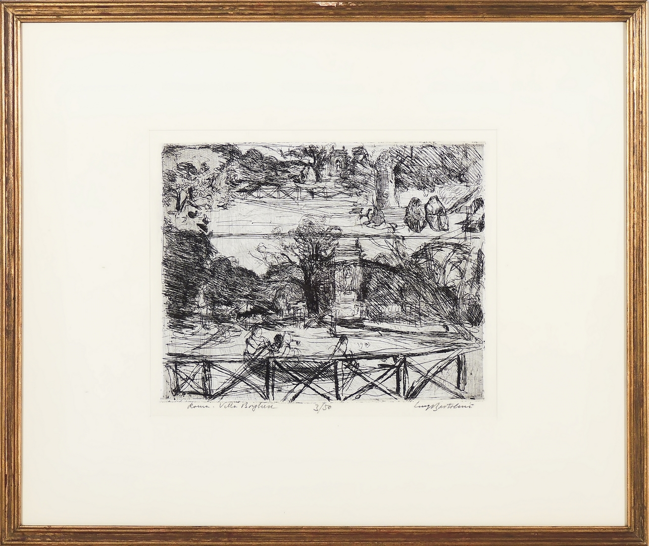 LUIGI BARTOLINI (1892-1963) Roma, Villa Borghese 1939 - Rome View acquaforte - etching, es 3/50, firmato, titolato e datato, in cornice cm 25x30