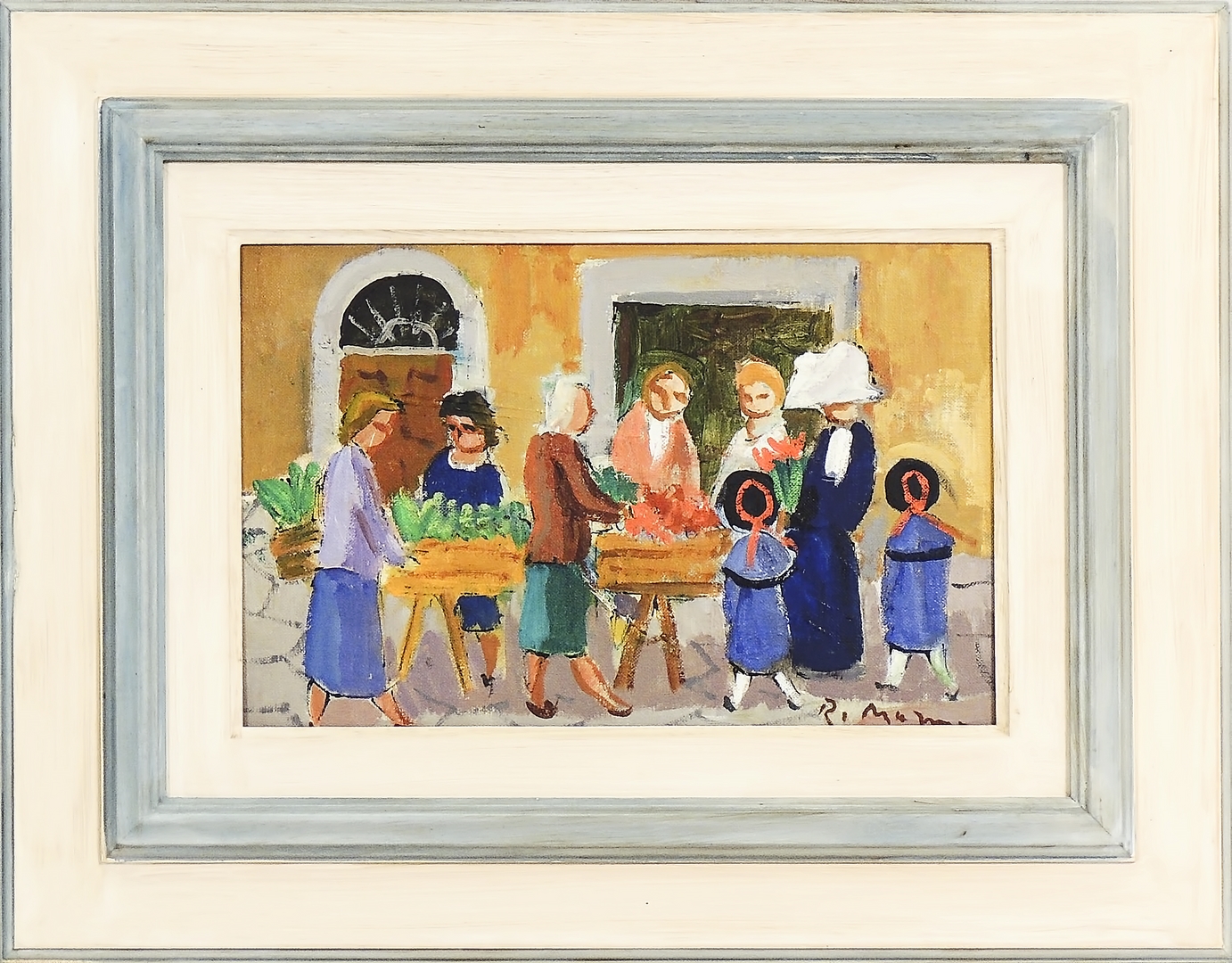 RODOLFO MARMA (1923-1999) Mercatino - Local Market olio su cartone telato - oil on canvas board, firmato, in cornice cm 20x30