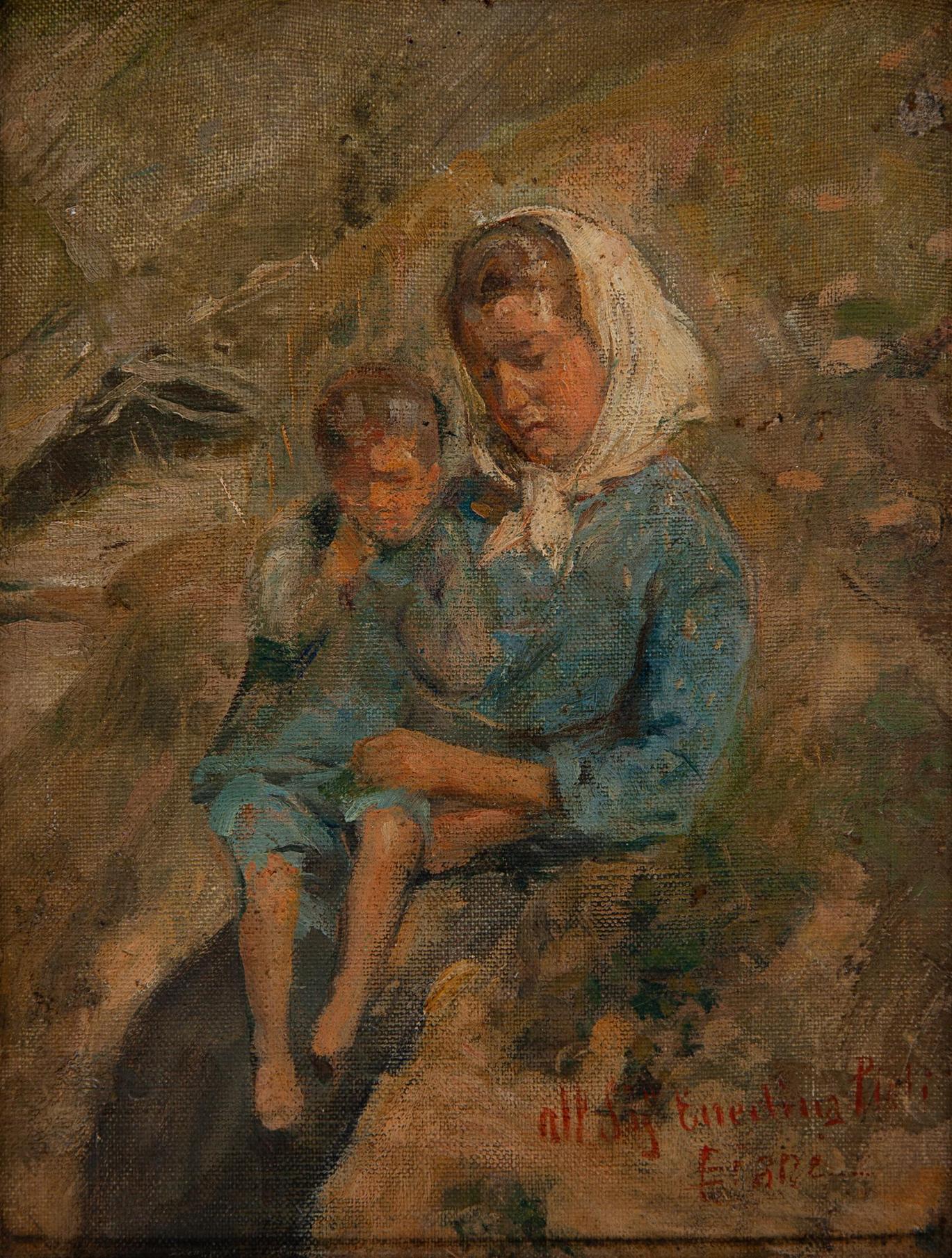 Cesare Ciani Firenze 1854 - Firenze 1921 Maternita' Olio su cartone cm 25,5x19