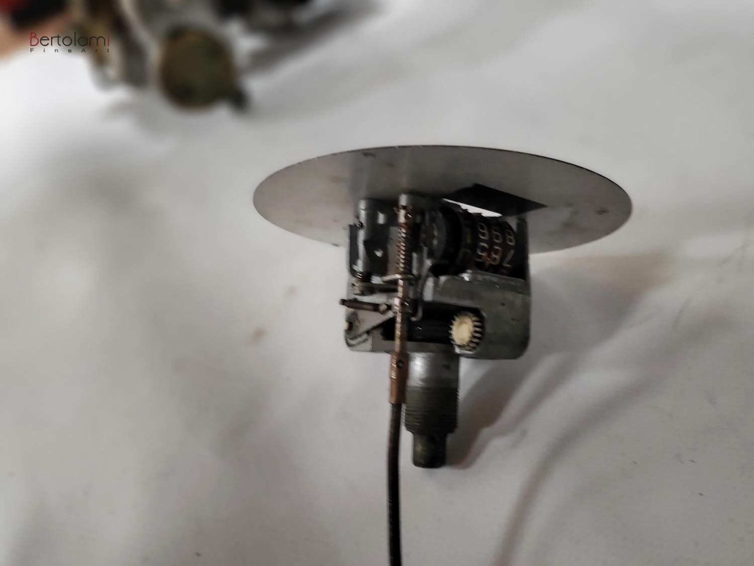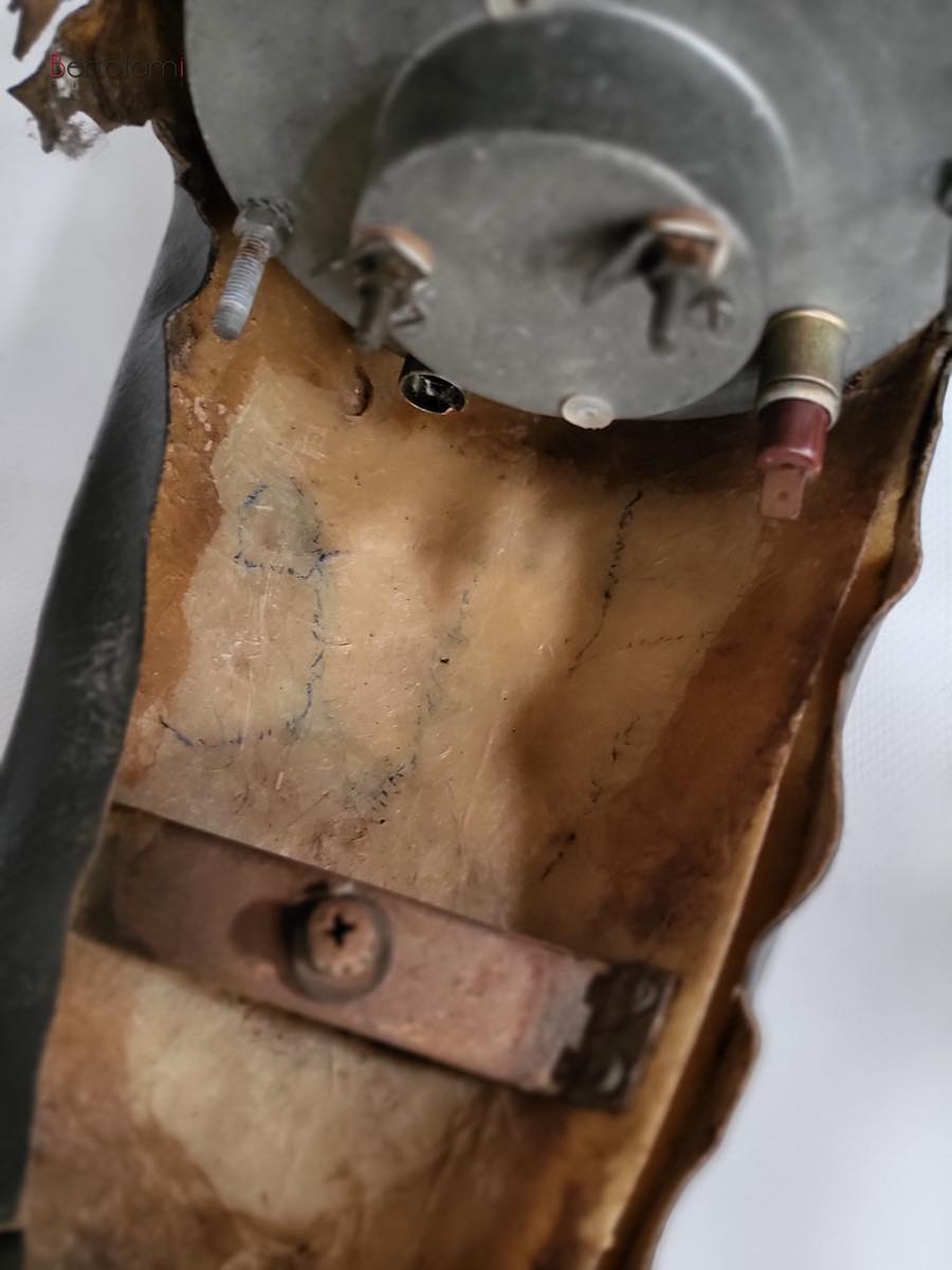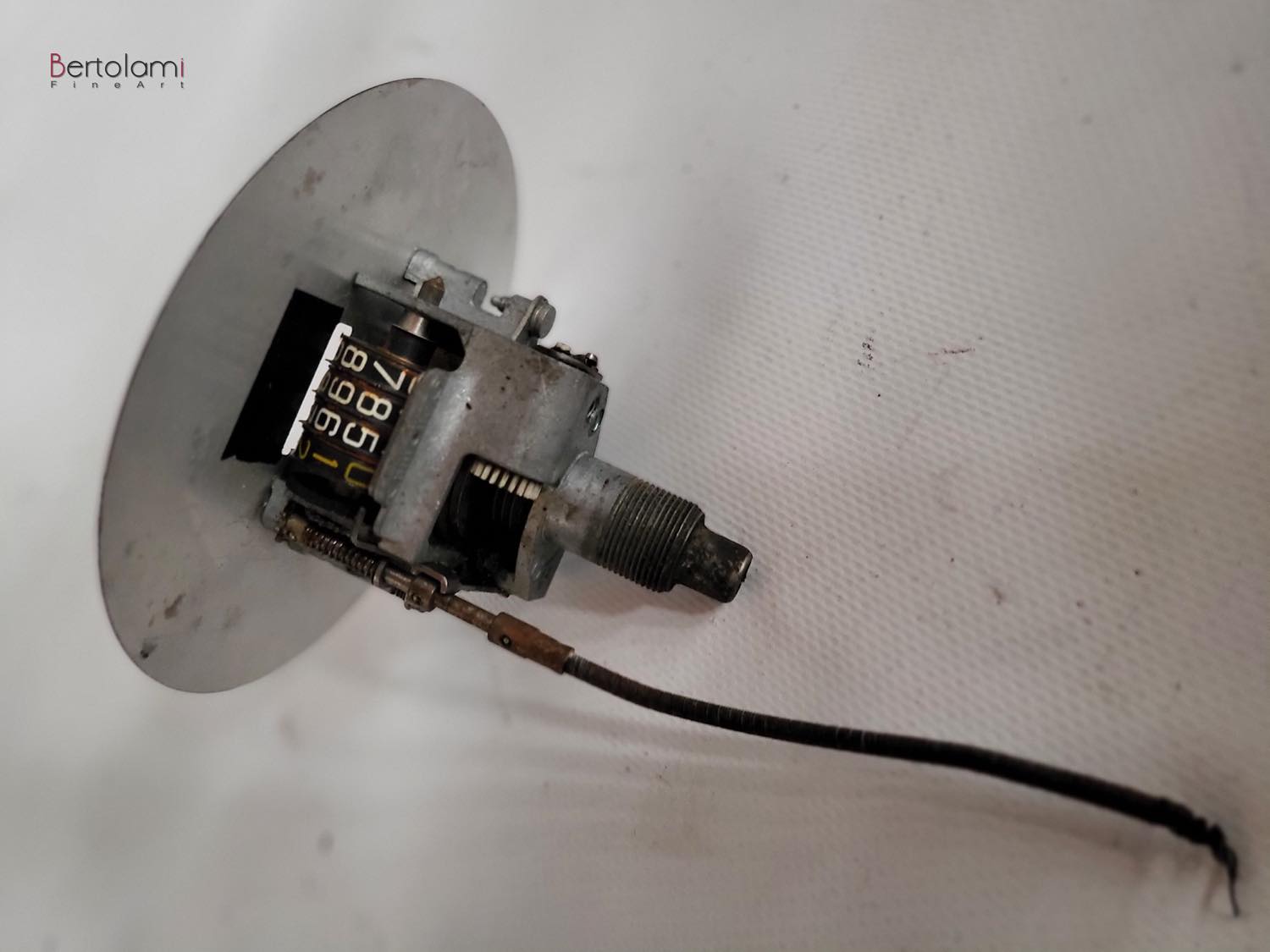 In ottimo stato, funzionanti entrambi. Il contachilometri è privo del guscio in metallo ma facilmente ottenibile da uno strumento analogo per Alfa Romeo GT perchè della stessa casa produttrice, con le stesse dimensioni e la stessa forma. Il contagiri è invece completo con il guscio di vetroresina originale e la pelle che lo riveste è ancora in ottimo stato. All'interno sulla vetroresina si nota il numero impresso in fabbrica a mano, probabilmente della vettura da cui derivano.