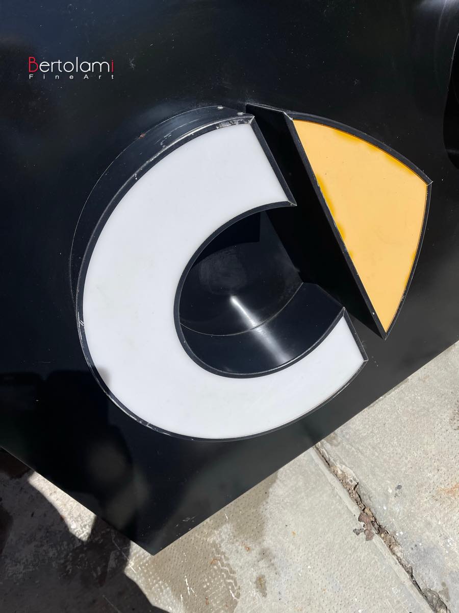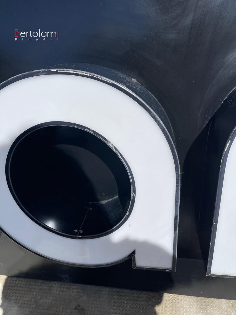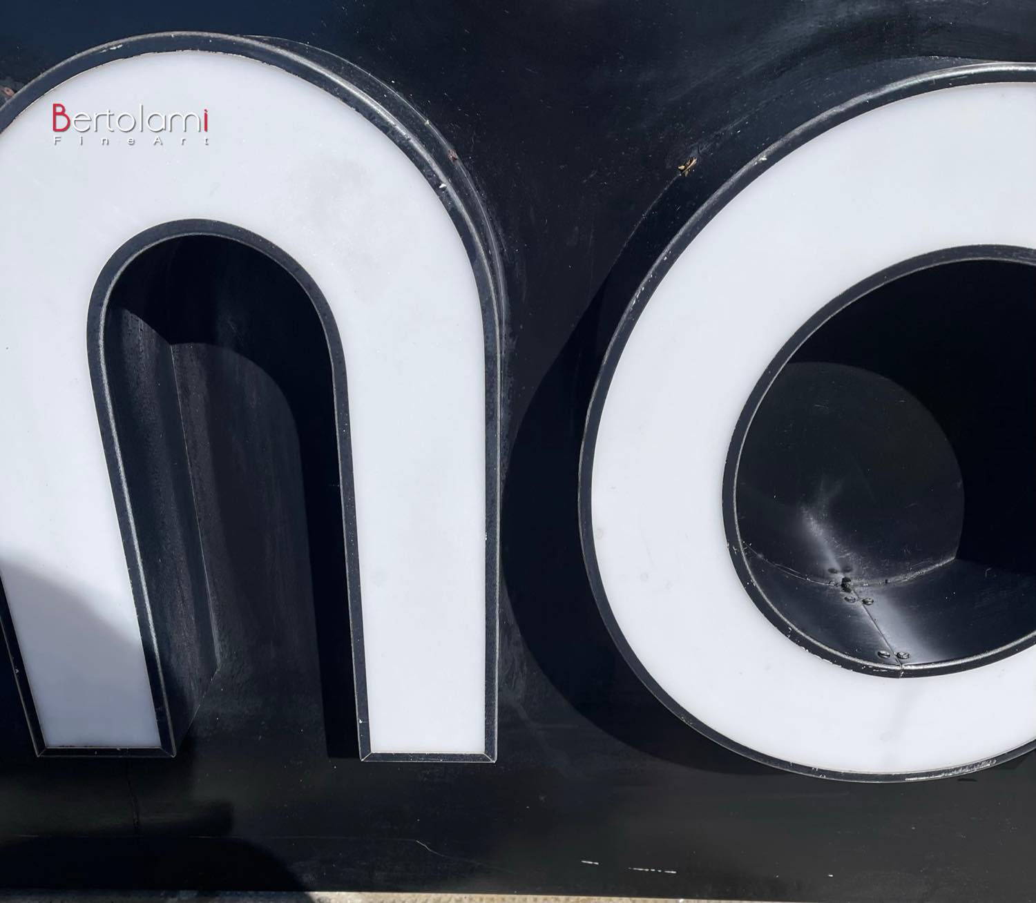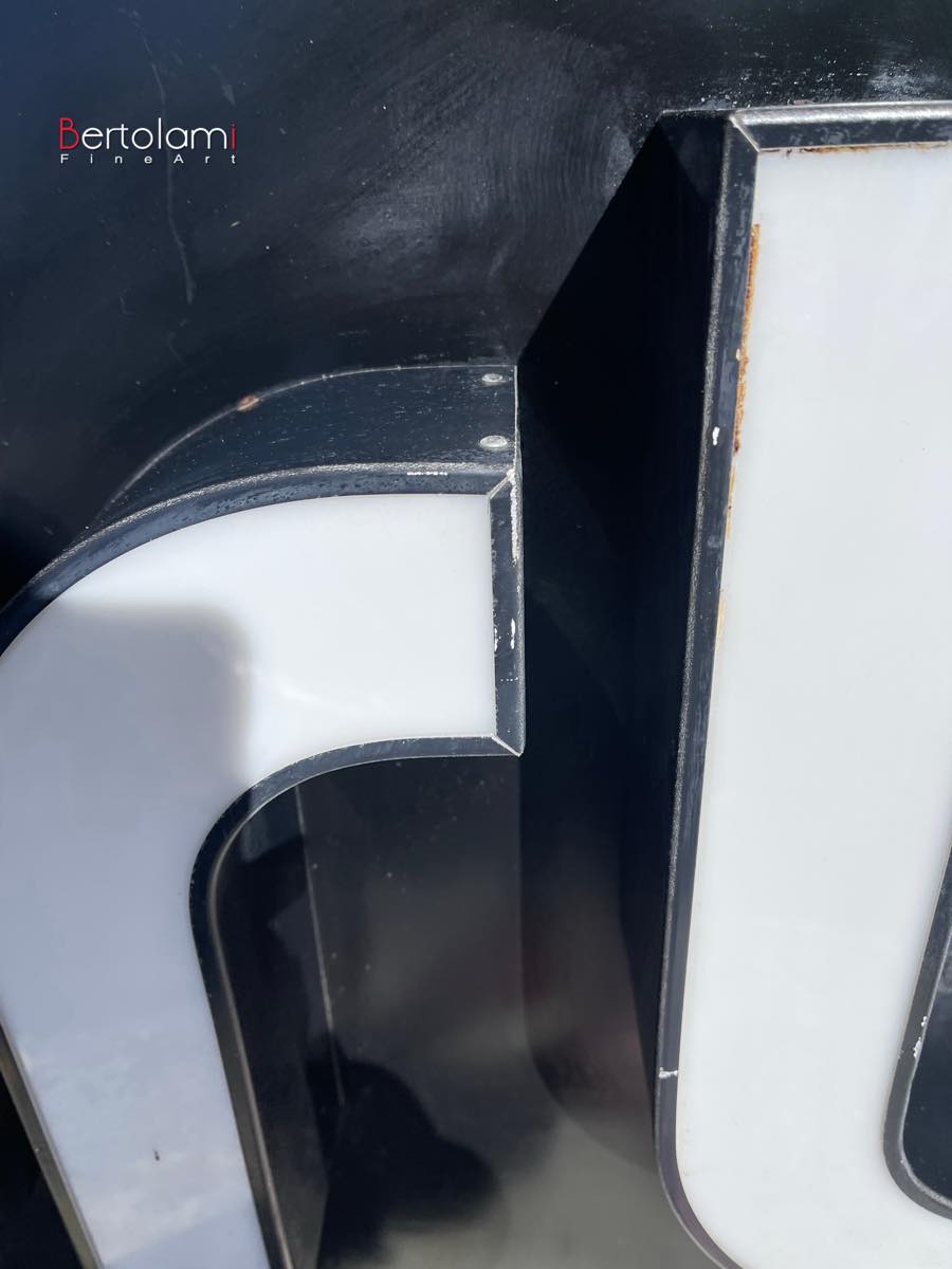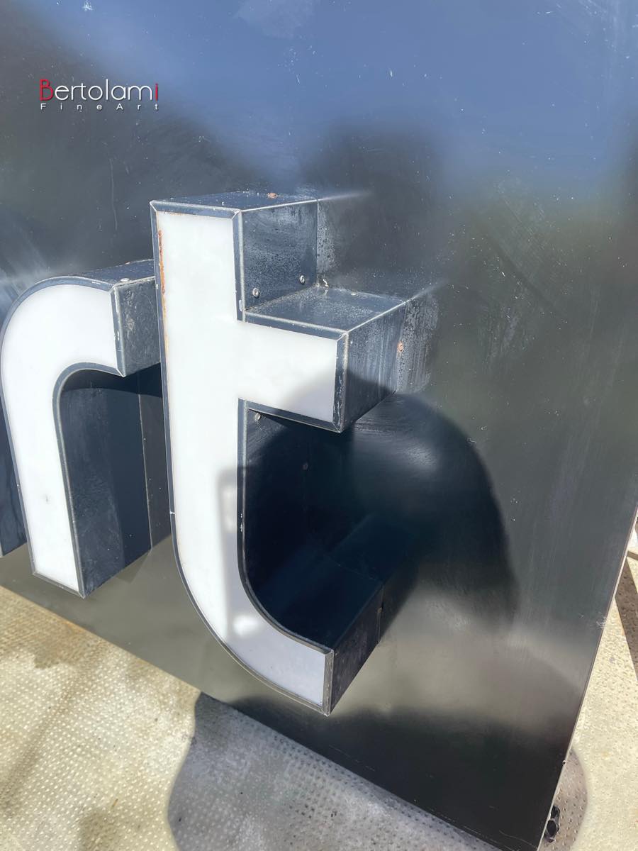 Insegna usata con evidenti segni di usura da esposizione solare e intemperie