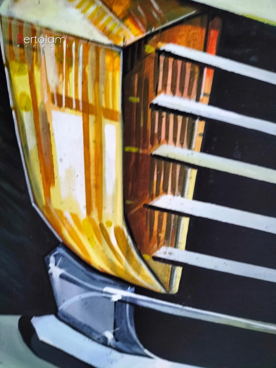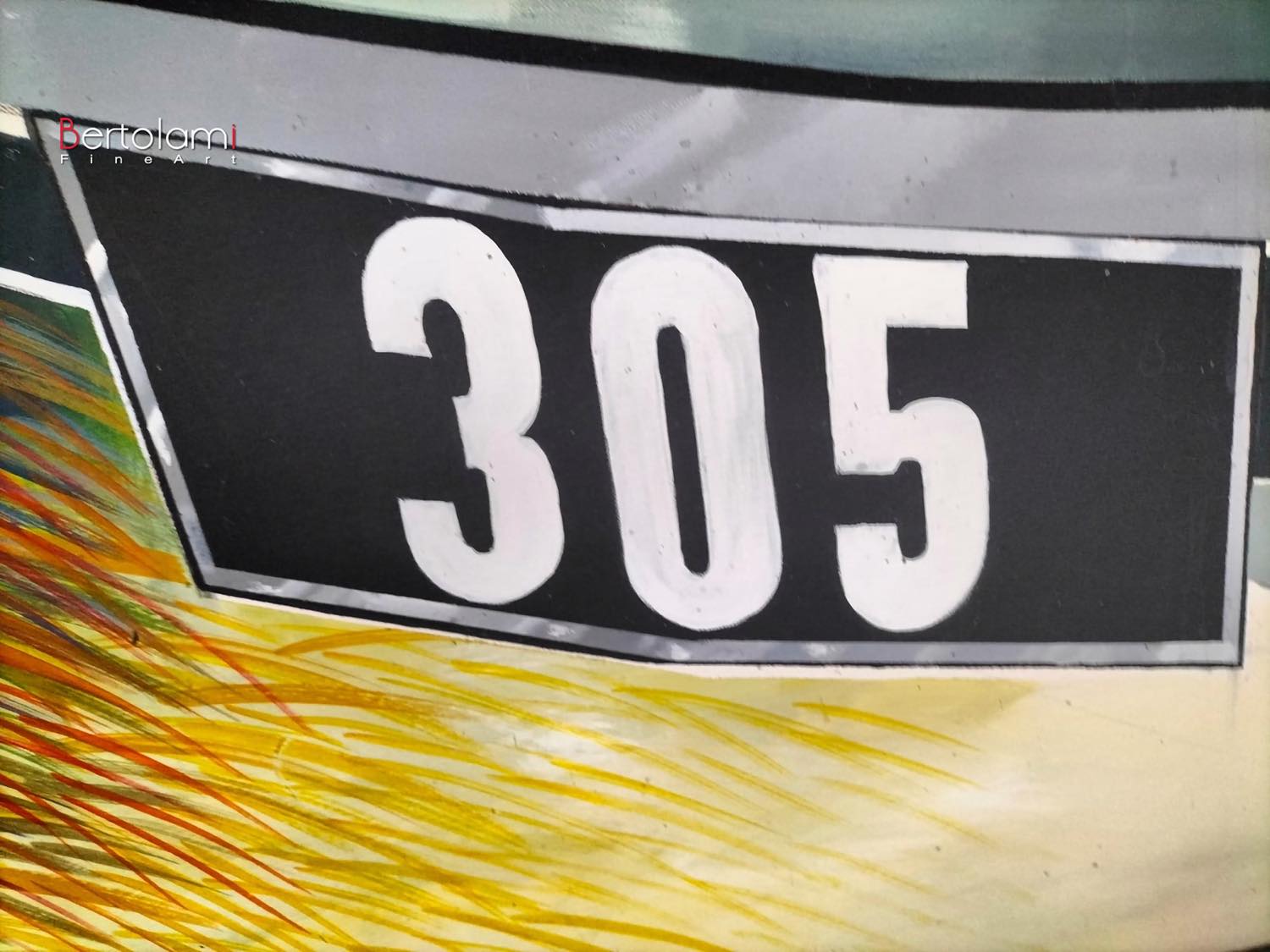 Il quadro raffigura una Peugeot 305, solo il frontale leggermente laterale sinistro, con il tipico dinamismo fatto di colori e sfumature. L’auto è riprodotta in maniera molto fedele, il quadro può essere interessante intanto come opera del pittore e in seguito per gli amanti del marchio e dell’auto.