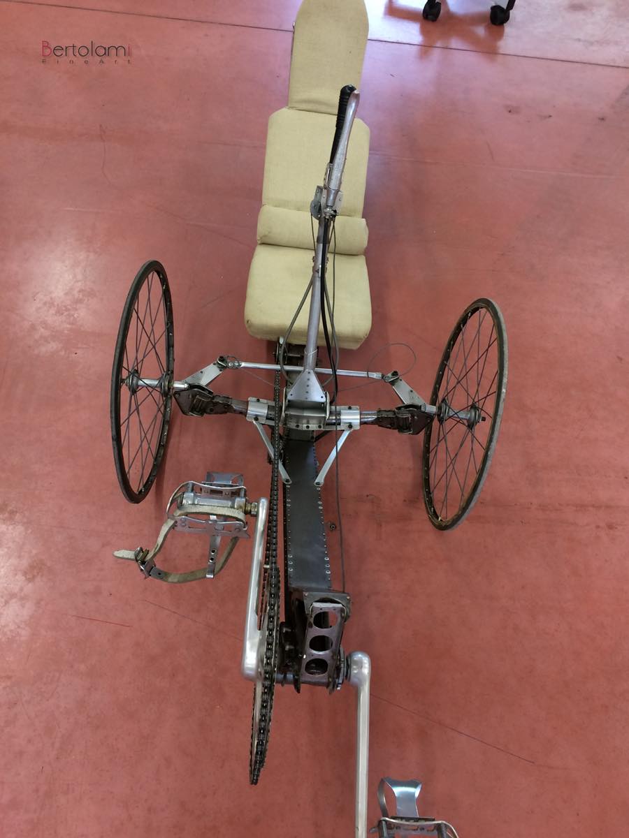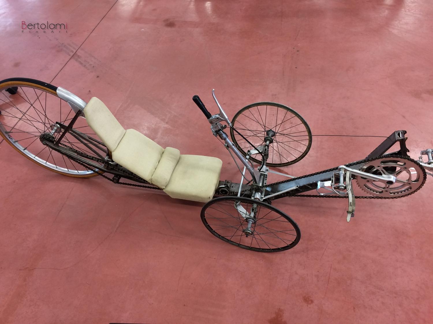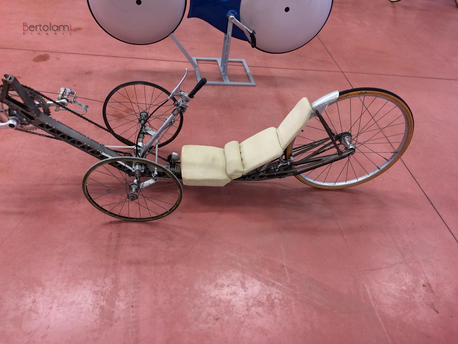 Questa è il prototipo delle primissime biciclette distese ora largamente diffuse nel mercato attuale e impiegate anche dal grandissimo Alex Minardi nelle prove Olimpiche per la sua disciplina.