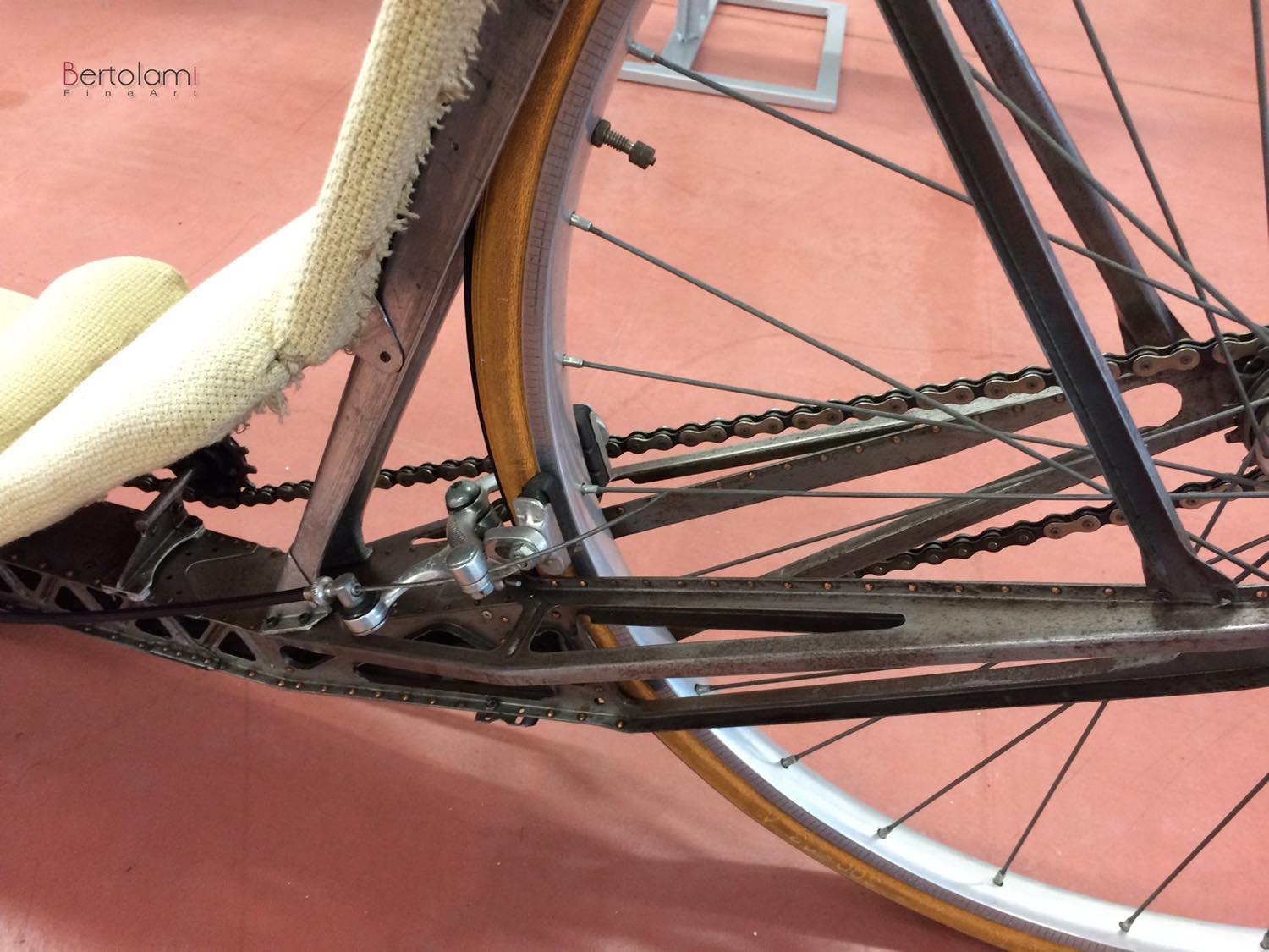 La bicicletta è un prototipo, acquistata da un collezionista insieme al prototipo in legno progettato dall’Ing. Cingolani.