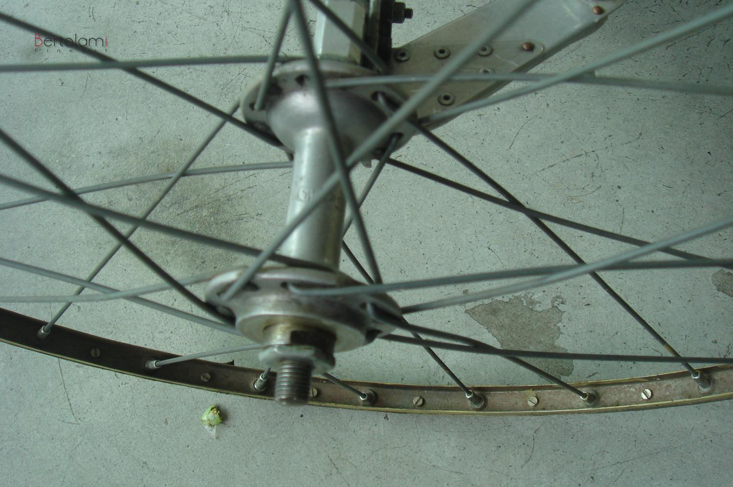 Le ruote anteriori non hanno entrambe i copertoni, solo il posteriore marca Nigi, l’anteriore presenta una guarnizione in gomma perfettamente tenuta.