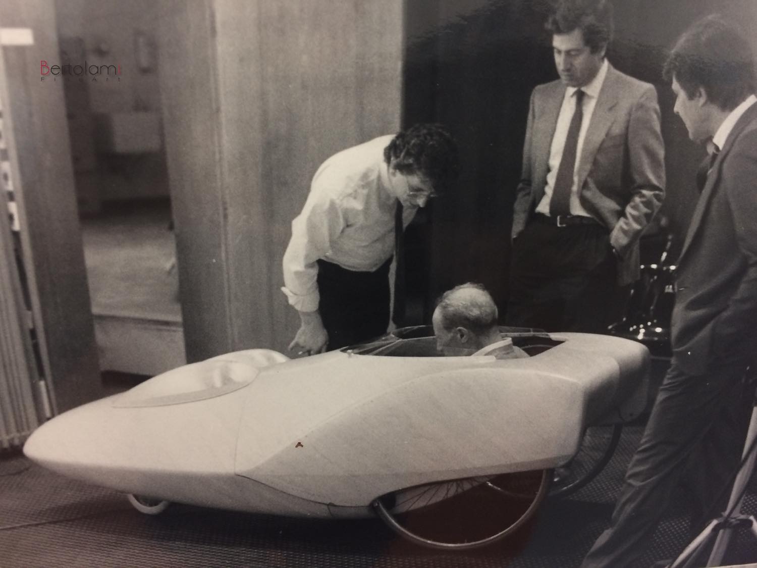 L’Ing. Cingolani chiese la collaborazione di Giorgetto Giugiaro per posizionare la biciletta alla Galleria del Vento dove si eseguivano le prove di aereodinamicità sui mezzi oltre ad essere anche la prima Galleria del Vento costruita nel mondo.