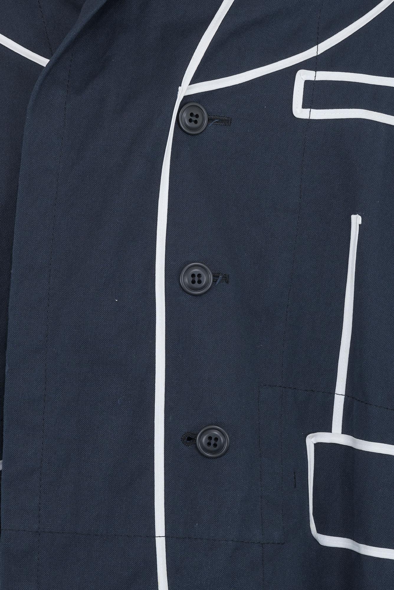 Raro cappotto militare blu navy con piping bianco effetto blazer trompe l'oeil della collezione AI 08