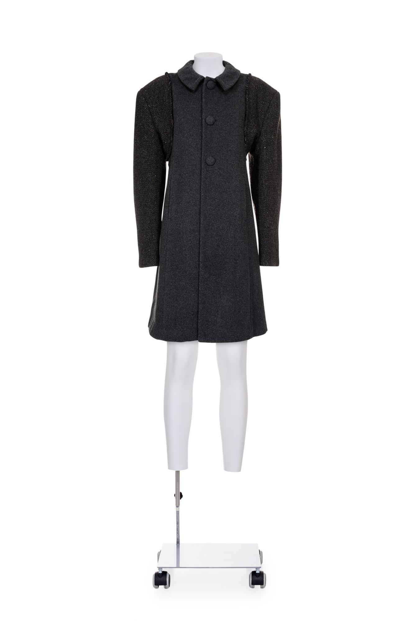 Two fabrics flared charcoal coat with tweed sleeves from FW 93 collection
