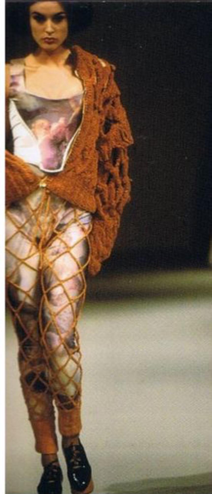 Rare blue chenille net leggings from FW 91 "Cut And Slash" collection