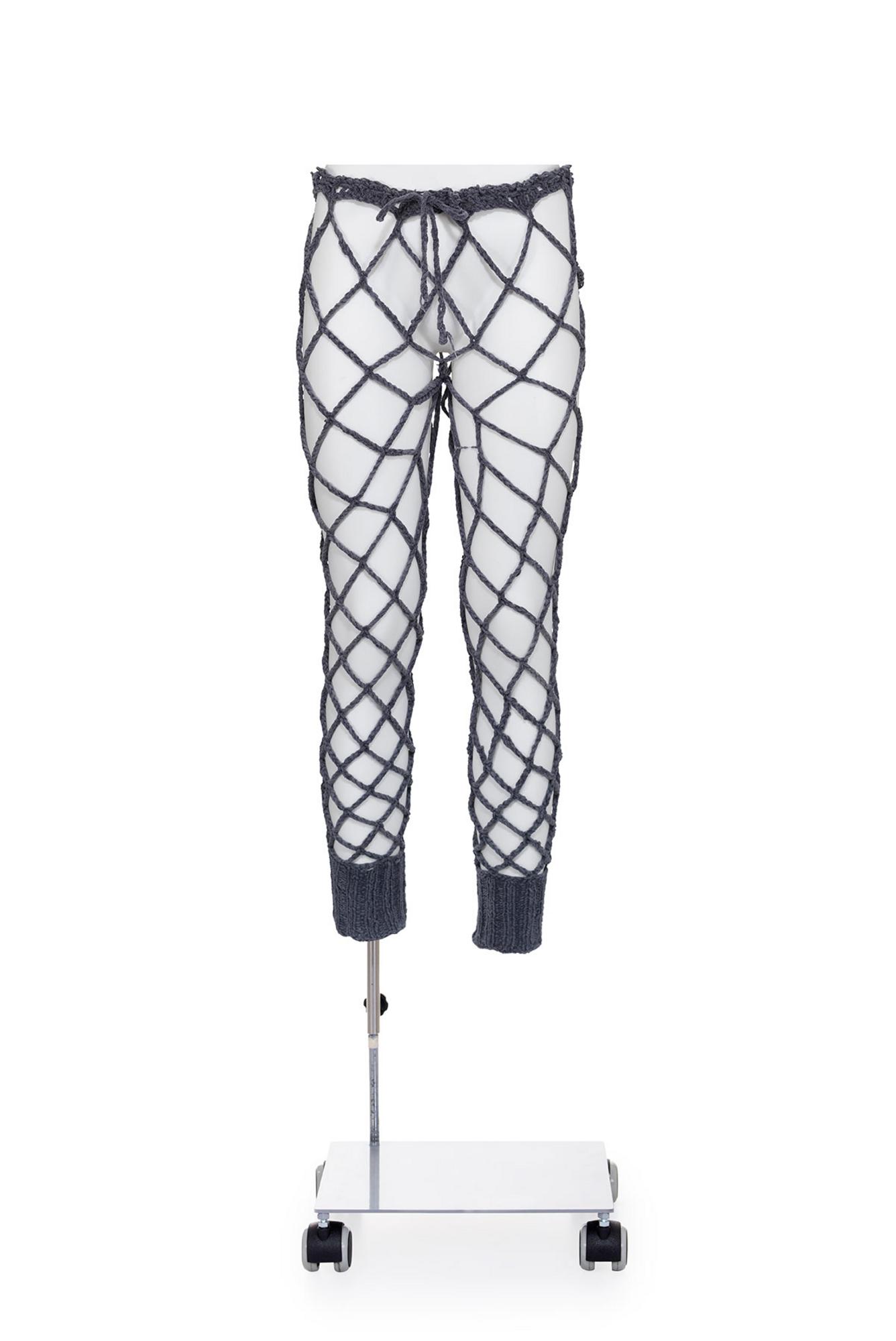 Rari leggings in rete di ciniglia blu della collezione AI 91 "Cut And Slash".