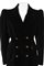 Iconico e raro completo doppiopetto in velluto nero Red Label degli anni '90, blazer con maniche a sbuffo e bottoni metallici orb, due tasche con patta, completamente foderato con fodera rosa jacquard orb, minigonna con zip sul retro.