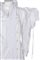Raro abito in popeline bianco drappeggiato con ampie spalle a palloncino arricciate e chiusura con bottoni diagonali della collezione PE 03
