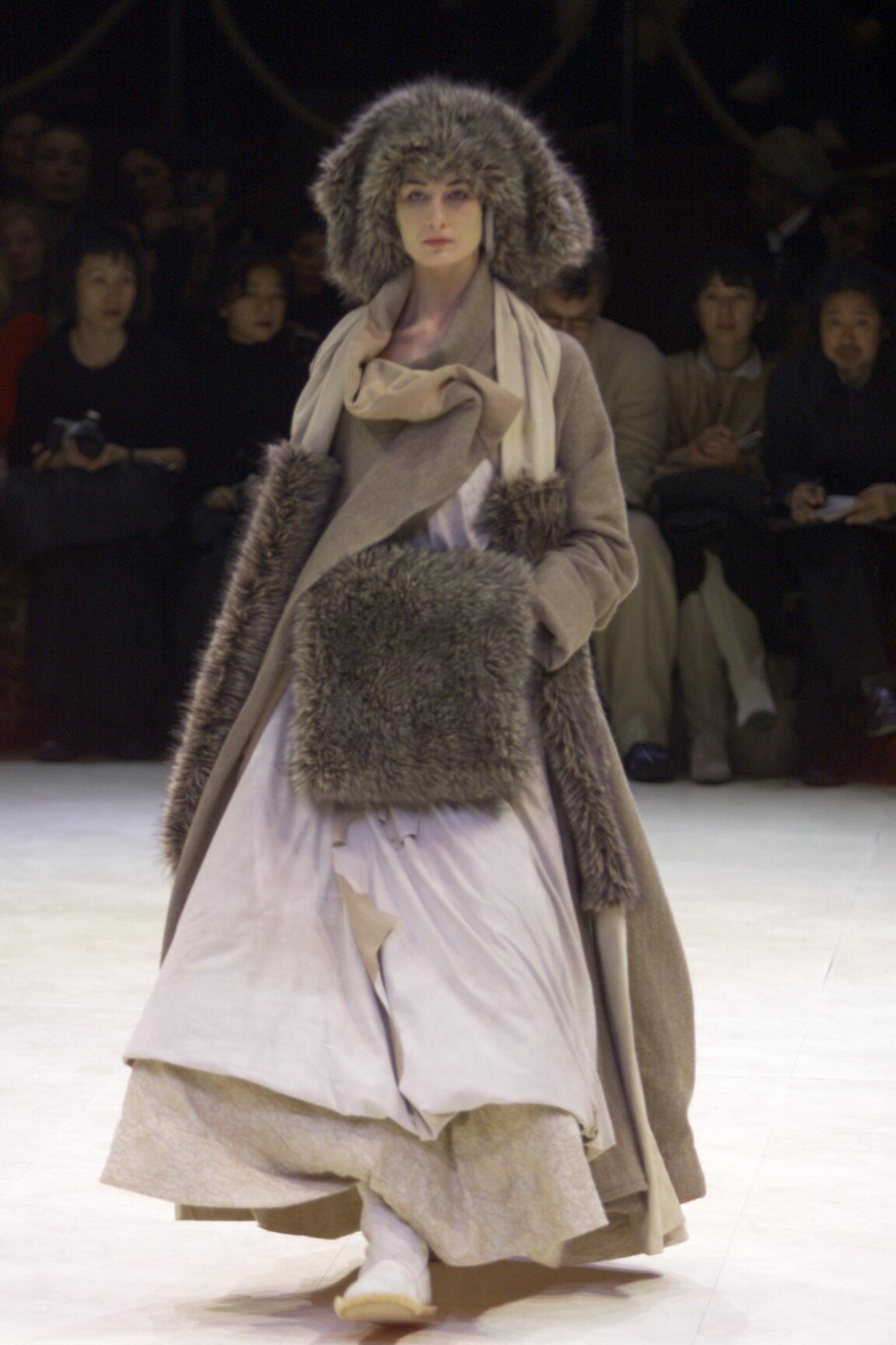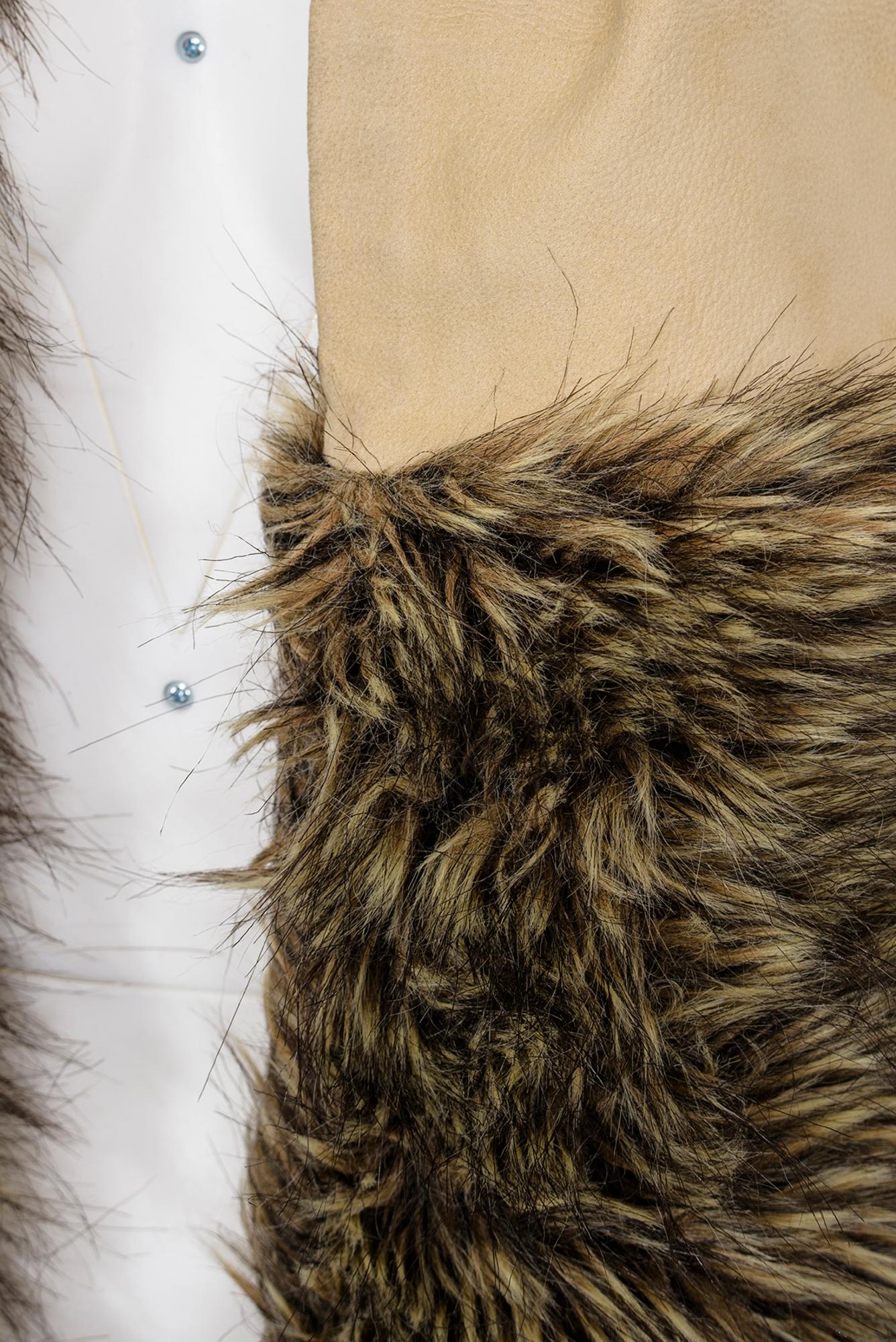 Long beige leather stole with fake fur inserts from FW 00 collection