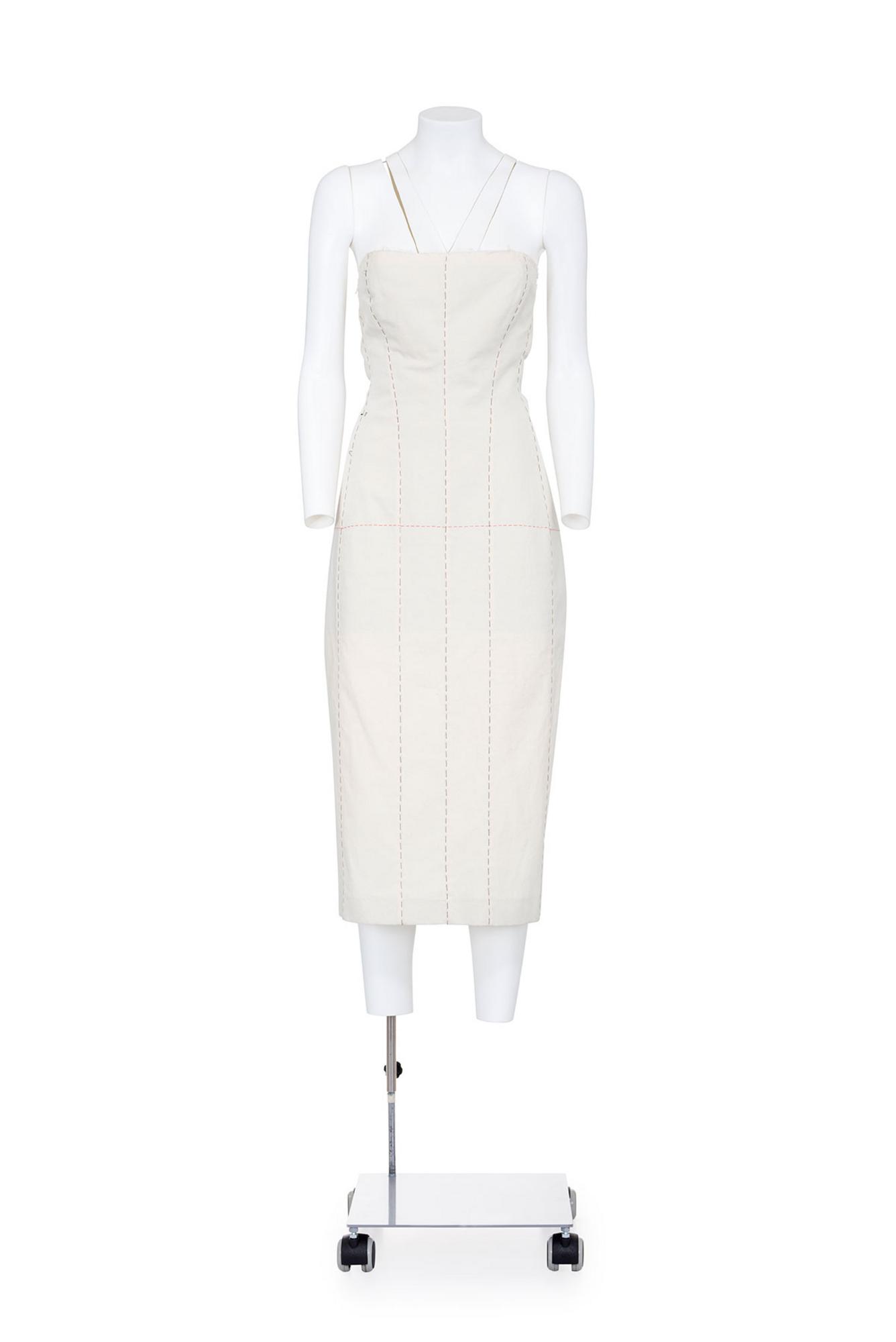 Ivory strapless dress with contrast stitching