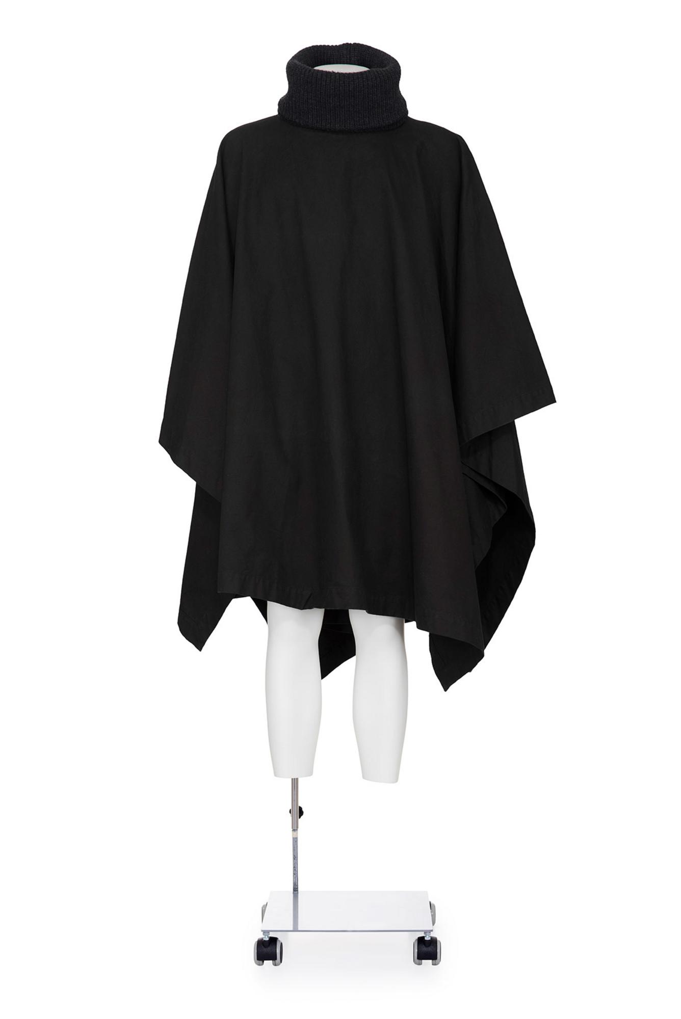 Rara e iconica mantella nera con dolcevita in maglia a costine della collezione AI 00 "Confusion".