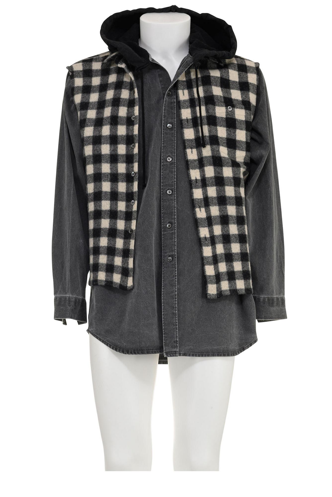 Lotto 137 | RAF SIMONS Layered shirt with sweatshirt hood DESCRIPTION: Layered charcoal...