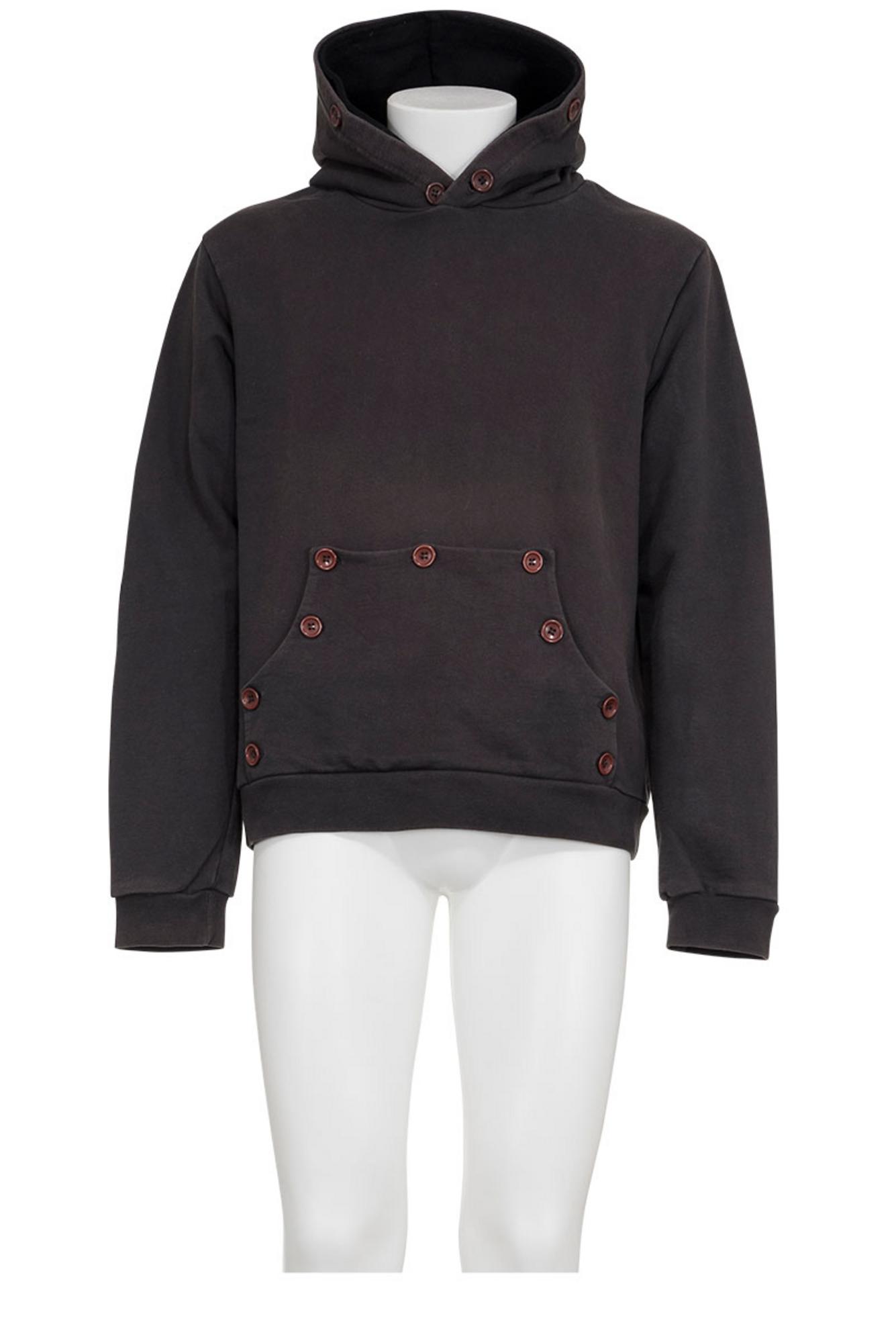 Double hooded charcoal sweatshirt with multi buttons kangaroo pocket from FW 06 collection