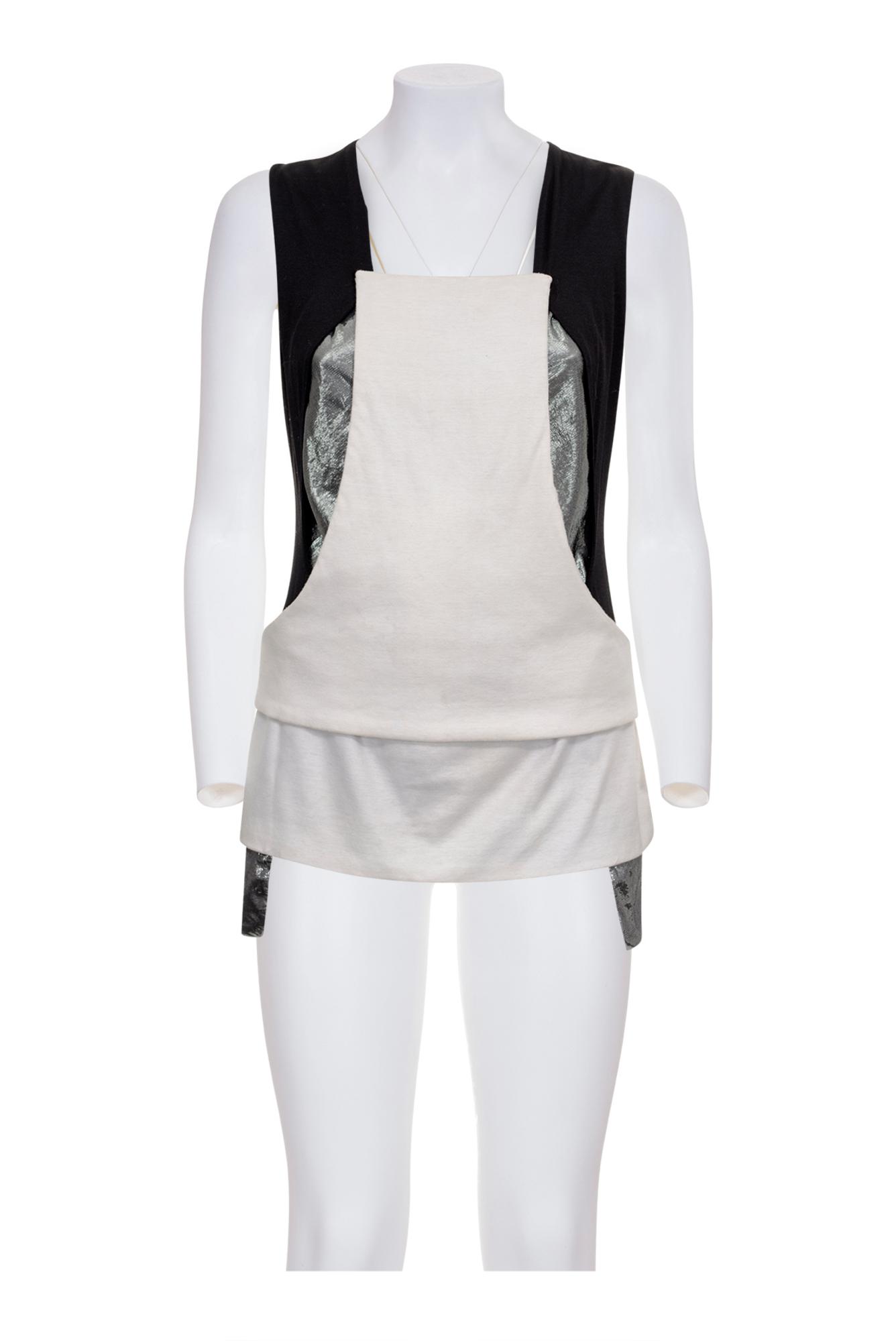 Multi layered black and white jersey top with silver lurex fabric panels from FW 02 collection