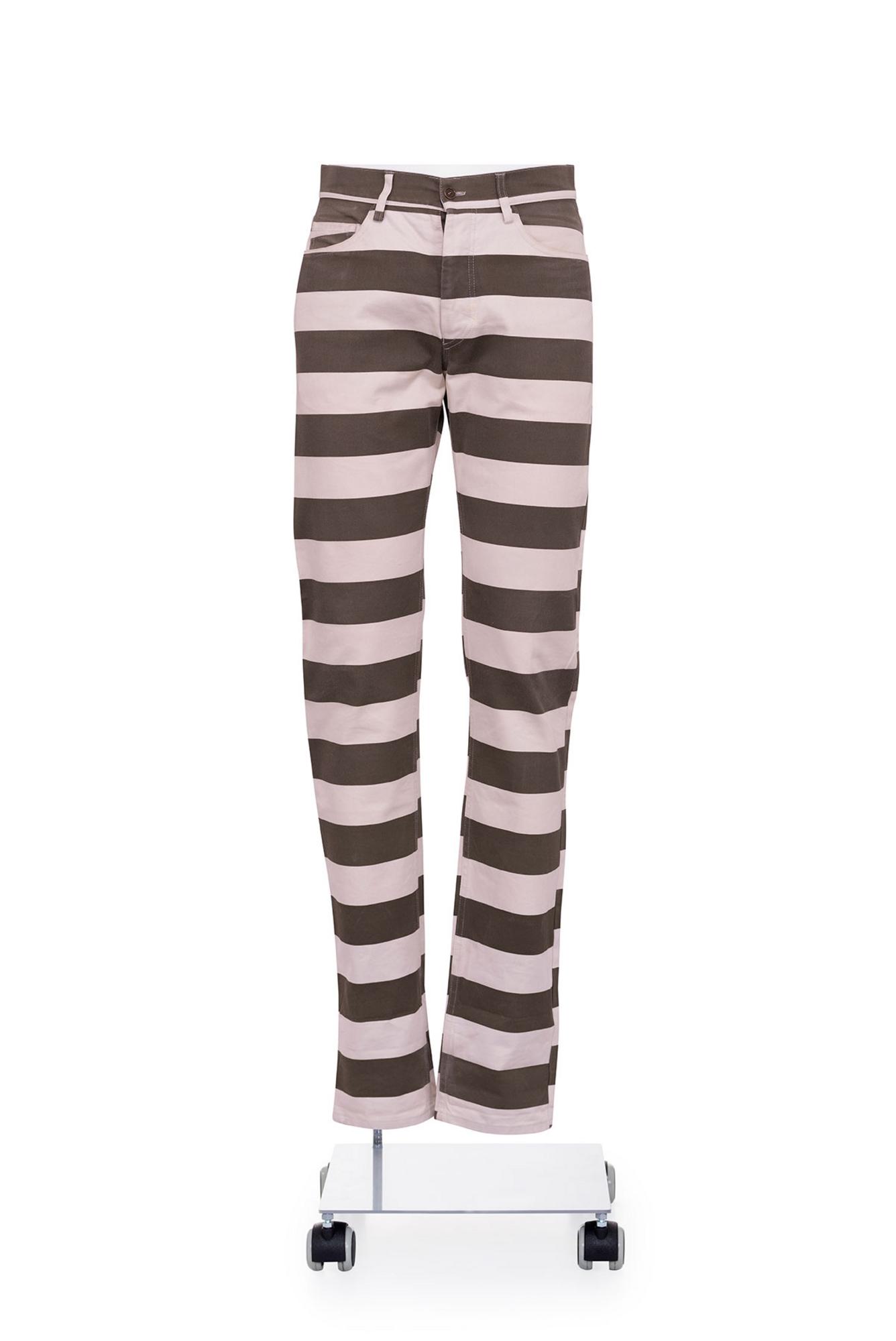 Iconic and rare ivory and khaki striped men five pockets trousers from SS 99 collection