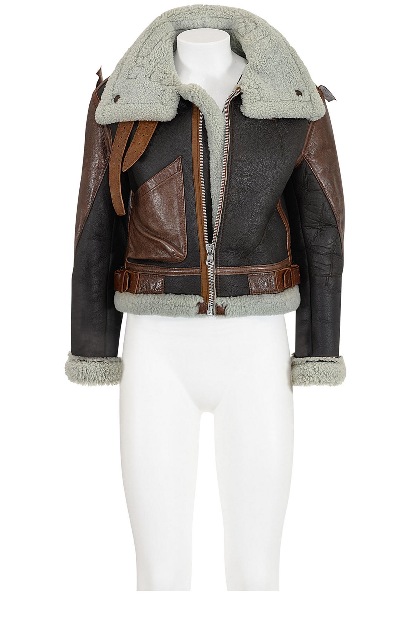 Iconic two tones of brown shearling aviator women jacket from FW 03 collection