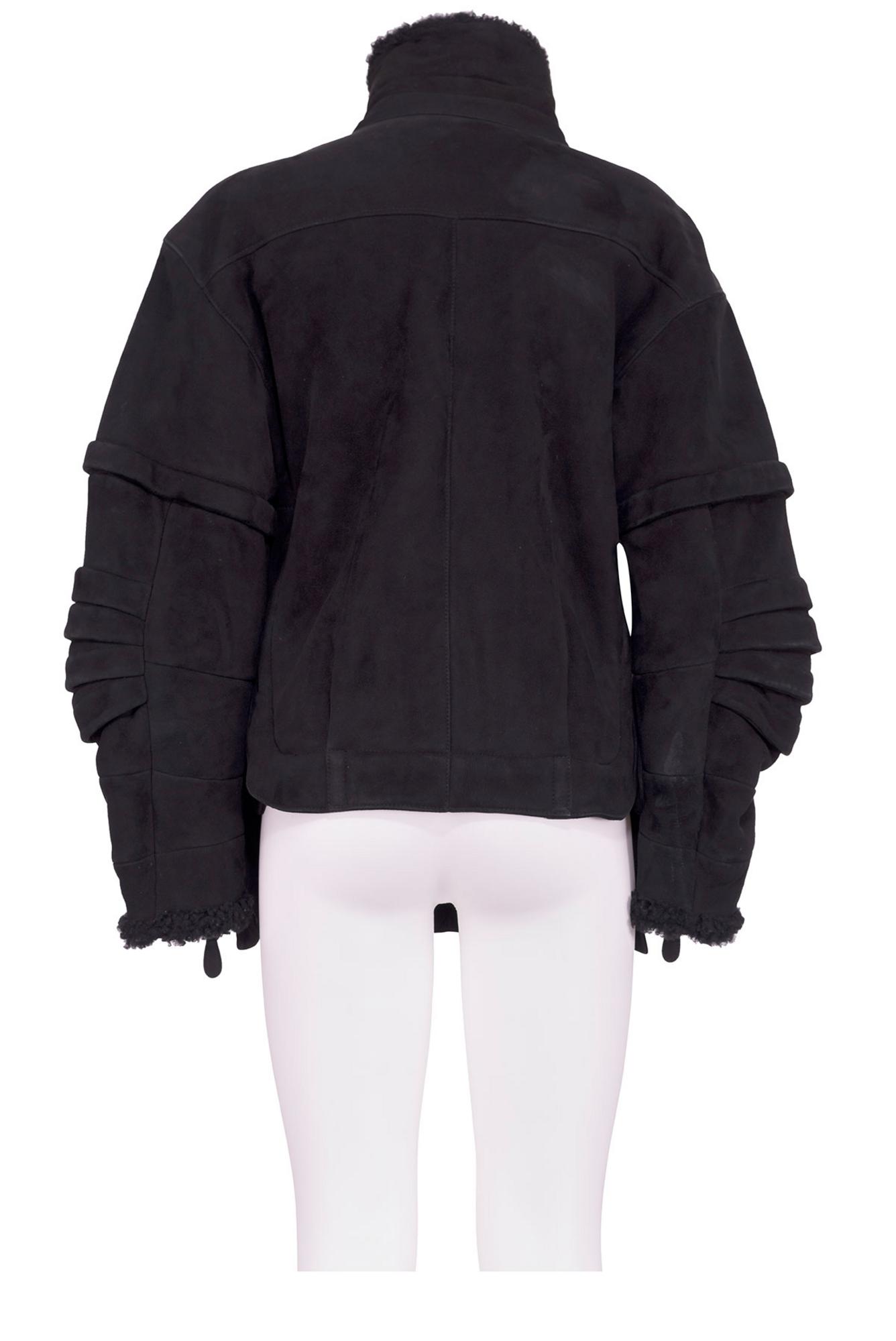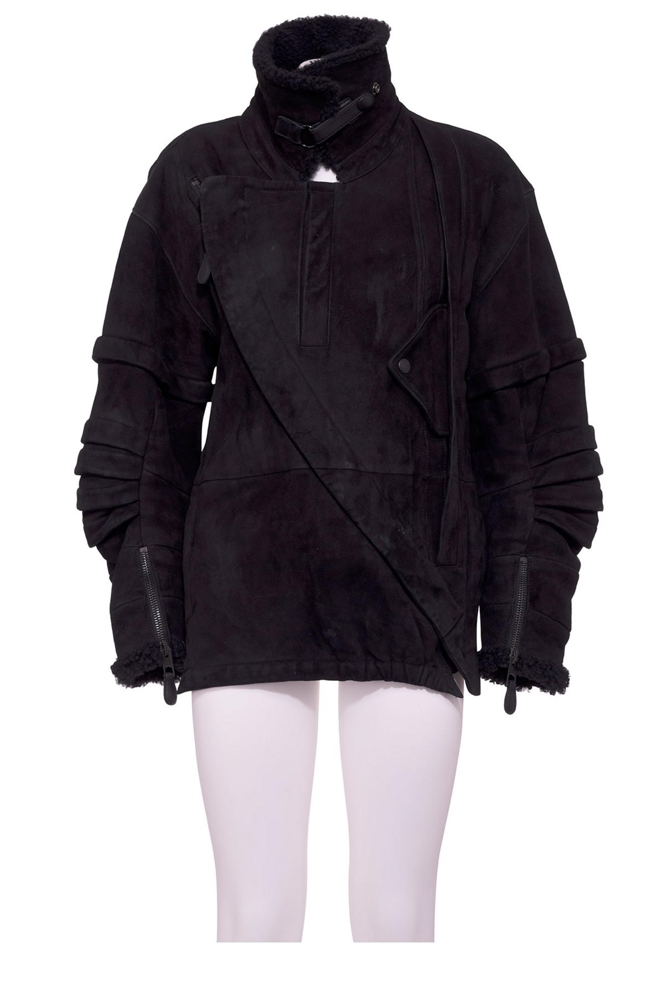 Raro modello aviator Balenciaga Leather in shearling nero con chiusura con zip diagonale e una tasca sul davanti degli anni 00