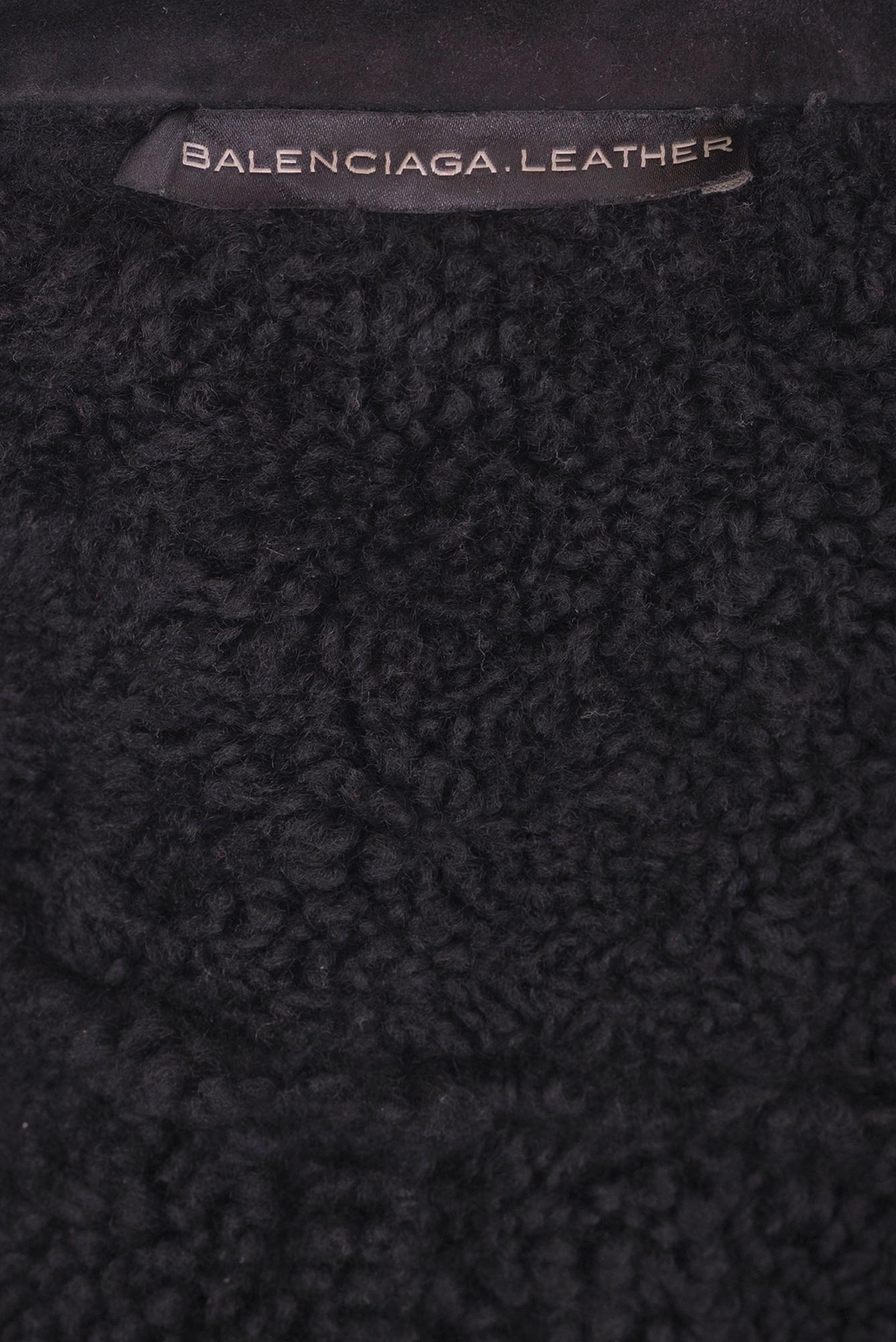 Rare Balenciaga Leather black shearling aviator with diagonal zip closure and one pocket at front from th 00's