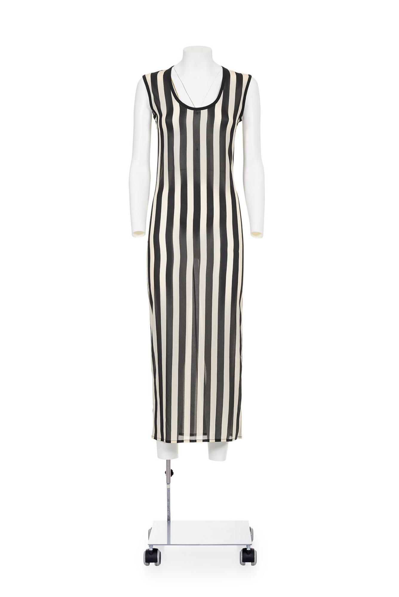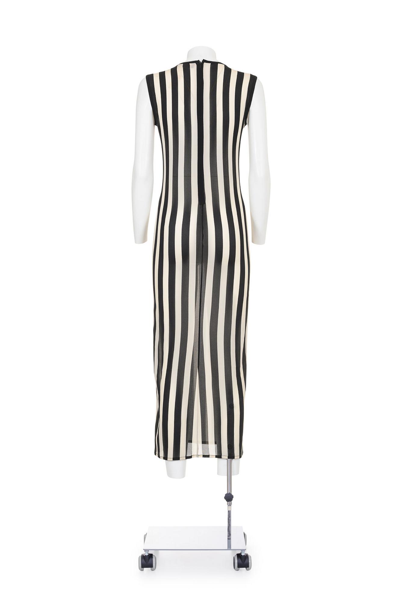 Abito lungo smanicato a righe bianche e nere della collezione AI 93