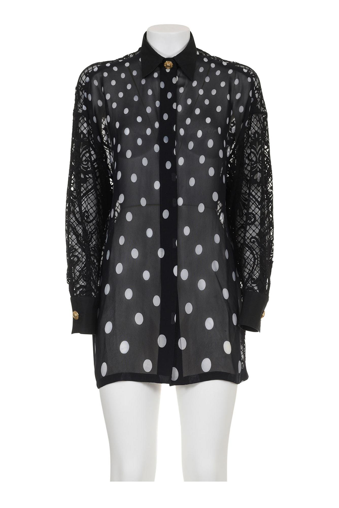 Black and white dotted silk shirt with sleeves and back in de'vore' jersey with lace effect from SS 94