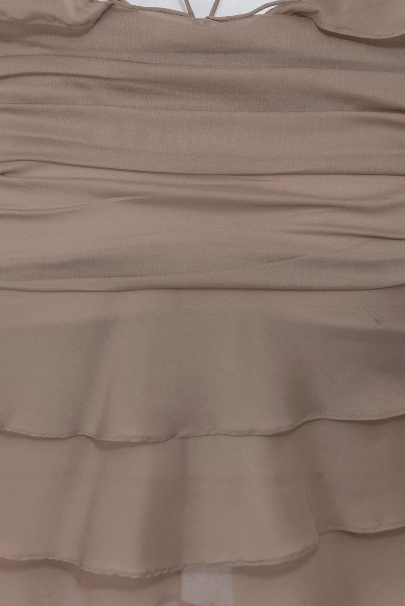Raro abito rosa chiaro a maniche lunghe drappeggiato con ampia scollatura e schiena scoperta con ruches della collezione PE 03