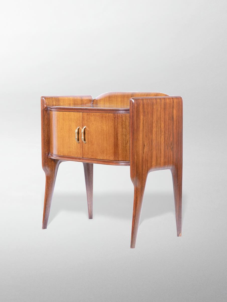 Elegante coppia di comodini in legno con top decorativo realizzati da Vittorio Dassi negli anni '70 del XX secolo.
