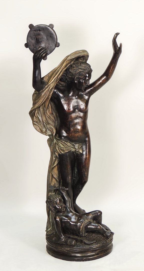 FIGURA MASCHILE CON TAMBURELLO E BAMBINO - MALE FIGURE WITH TAMBOURINE AND CHILD scultura in bronzo - Bronze h cm 100