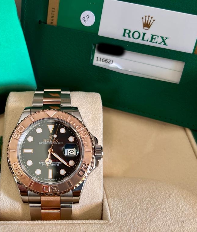 Marca Rolex Modello (Orologio) Yacht-Master 40 Numero di referenza 116621 Carica Automatico Materiale della cassa Oro/Acciaio Materiale cinturino Oro/acciaio Anno di produzione 2015/2019 Condizione Ottimo (di seconda mano, segni di usura assenti o appena visibili) Corredo Con documenti originali, con scatola di fornitura Carica Automatico Calibro/Meccanismo 3135 Cassa Materiale della cassa Oro/Acciaio Diametro 40 mm Prova Impermeabile 10 ATM Materiale lunetta Oro rosa Vetro Vetro zaffiro Quadrante Nero Numeri sul quadrante Senza numeri Cinturino Materiale cinturino Oro/acciaio Colore cinturino Oro/acciaio Chiusura Déployante Materiale chiusura Oro/Acciaio Funzioni Data