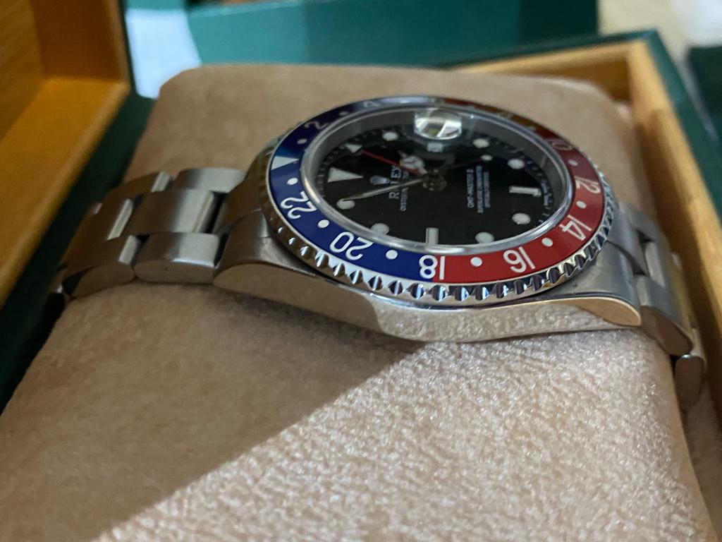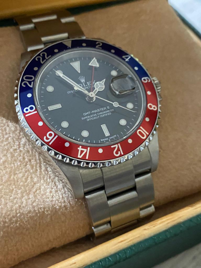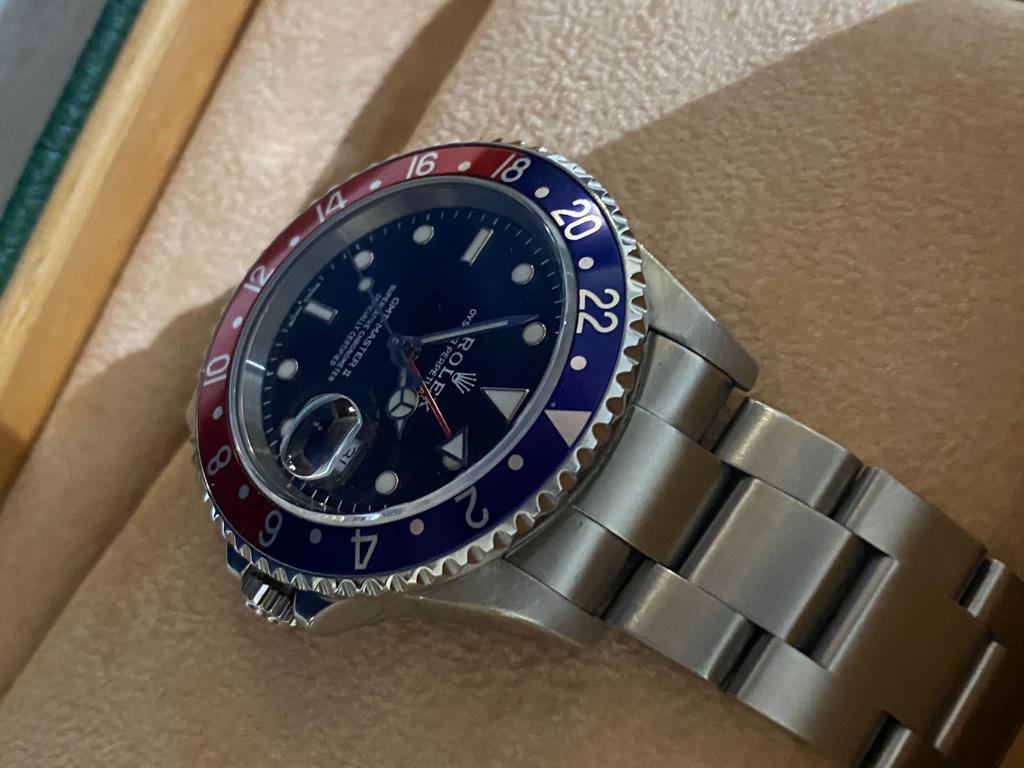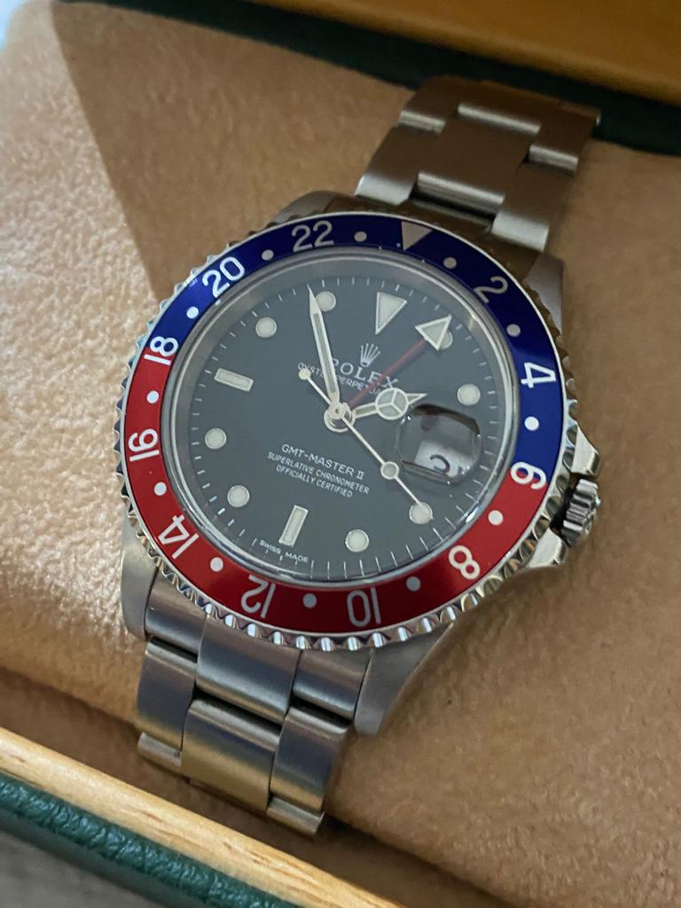 Marca Rolex Modello (Orologio) GMT-Master II Numero di referenza 16710 Carica Automatico Materiale della cassa Acciaio Anno di produzione anni 90 Condizione Ottimo Corredo Scatola di fornitura e documenti originali Rolex Calibro Carica Automatico Cassa Materiale della cassa Acciaio Diametro 40 mm Vetro Vetro zaffiro Quadrante Nero Funzioni Data, GMT