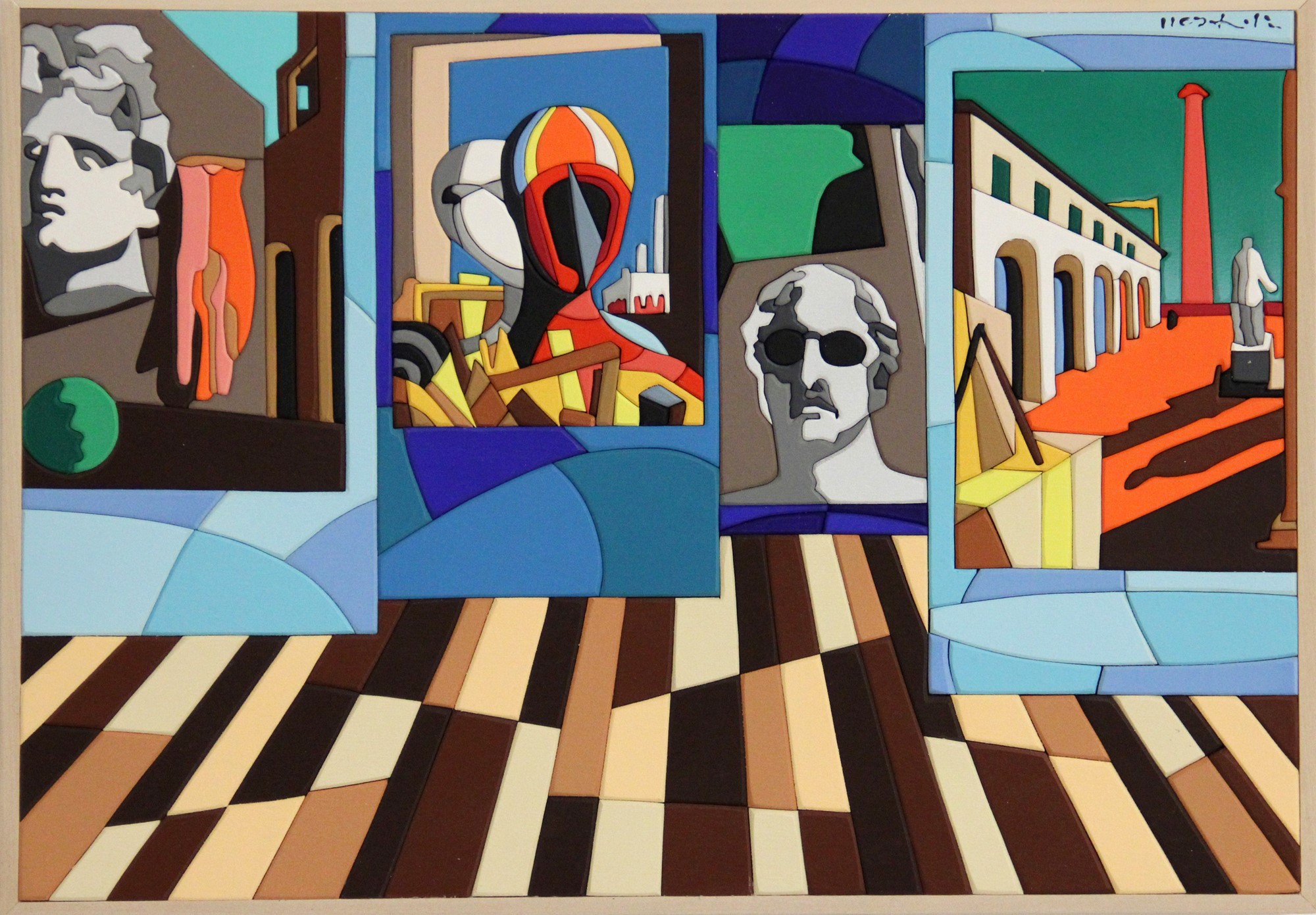 NESPOLO Ugo, Qualche enigma, acrilico su legno intarsiato, cm. 35x50
