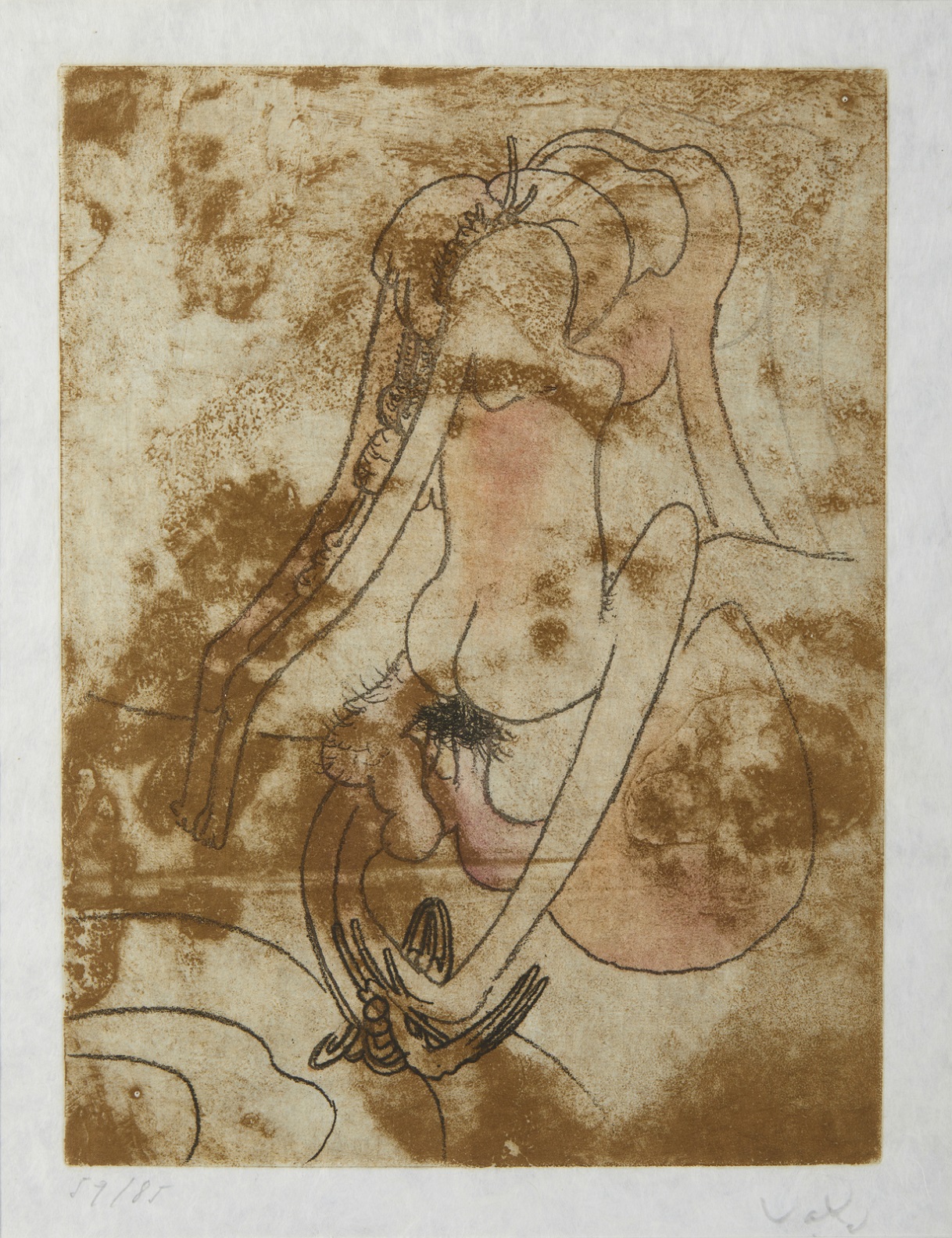 MATTA ROBERTO SEBASTIAN ANTONIO (1911 - 2002) F.M.R.- Composizione. 1971. Acquatinta. Cm 28,00 x 39,00. 59/85. Tiratura e firma in basso a matita. Dimensione lastra: 24x18 cm. Carta Japon Nacré. Certificato di provenienza Galleria S. Giorgio, Pordenone. Foglio proveniente dal portfolio FMR composto da 10 acqueforti e acquetinte Editore: Georges Visat, Paris. Stampatore: Atelier Georges Visat, Paris. Pubblicazioni: Sabatier n°260-269, Ferrari n°36-45. Edizione totale: 85 +XV esemplari.