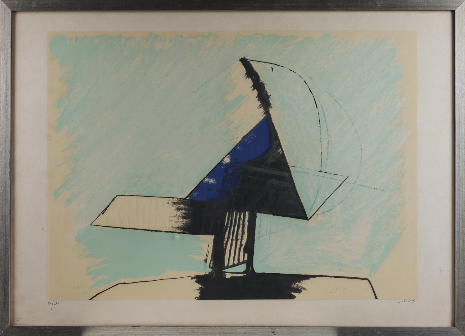 DOVA GIANNI (1925 - 1991) Senza titolo. Litografia. Cm 70,00 x 50,00. 50/250. Tiratura e firma in basso a matita. Timbro a secco 2R in basso a sinistra. Lievi difetti. Cornice presente