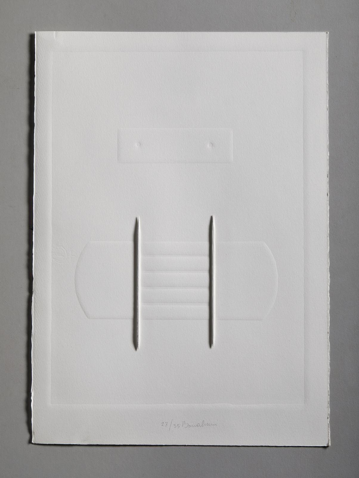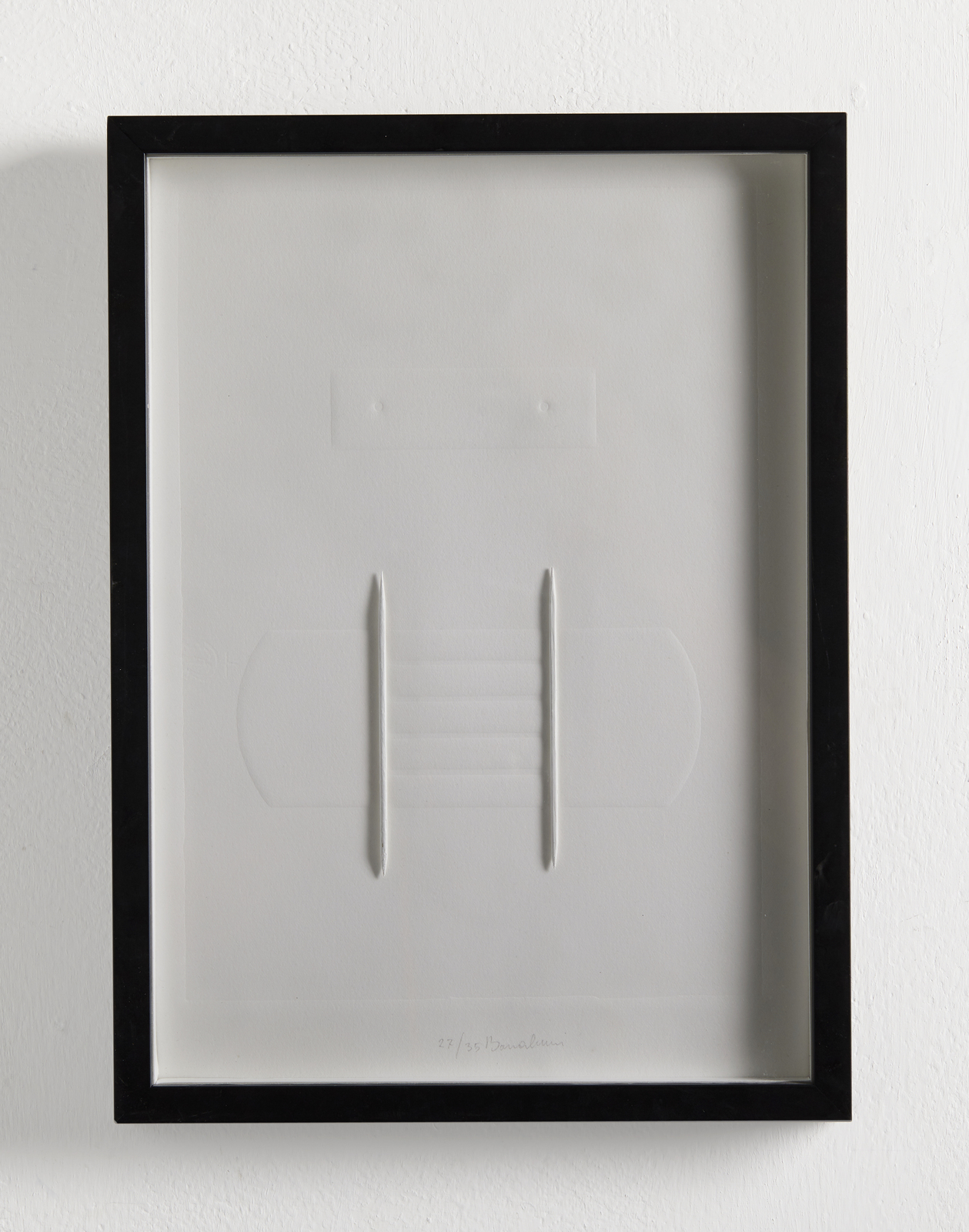 BONALUMI AGOSTINO (1935 - 2013) Senza titolo. Calcografia e collage. Cm 24,00 x 34,00. 27/35. Tiratura e firma in basso al centro a matita. Anni'90. Cornice presente