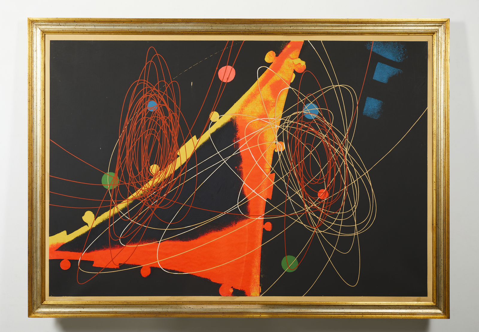CRIPPA ROBERTO GAETANO (1921 - 1972) Senza titolo. Serigrafia su carta applicata su tela. Cm 171,00 x 118,00. Firma in basso a destra a matita. Non presenta tiratura. Difetti. Cornice presente
