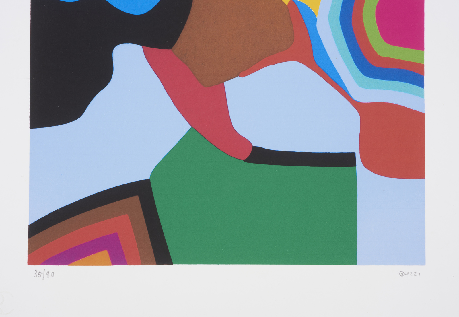 BURRI ALBERTO (1915 - 1995) Tavola 5. Foglio proveniente dalla cartella Serigrafie, 1973–1976. Serigrafia. Cm 35,00 x 45,00. 35/90. Tiratura e firma in basso a matita. Timbro a secco 2RC in basso a destra. Carta Fabriano Rosaspina. Edizione totale: 90 esemplari + XV prove d'artista. Stampatore: 2RC, Roma. Pubblicazioni: Burri-Catalogo generale, a cura di B. Corà, Città di Castello, 2015, p. 40. Esposizioni: Burri: disegni, tempere e grafica 1948–1976, Palazzo Ducale, Pesaro, settembre 1976 (un altro esemplare); Burri opere grafiche 1959–1981, Palazzo Pubblico, Siena, giugno 1981 (un altro esemplare). Sitografia: http://www.2rcgallery.com/edizioni/burri-alberto/#colibri-1961-c5-group-48