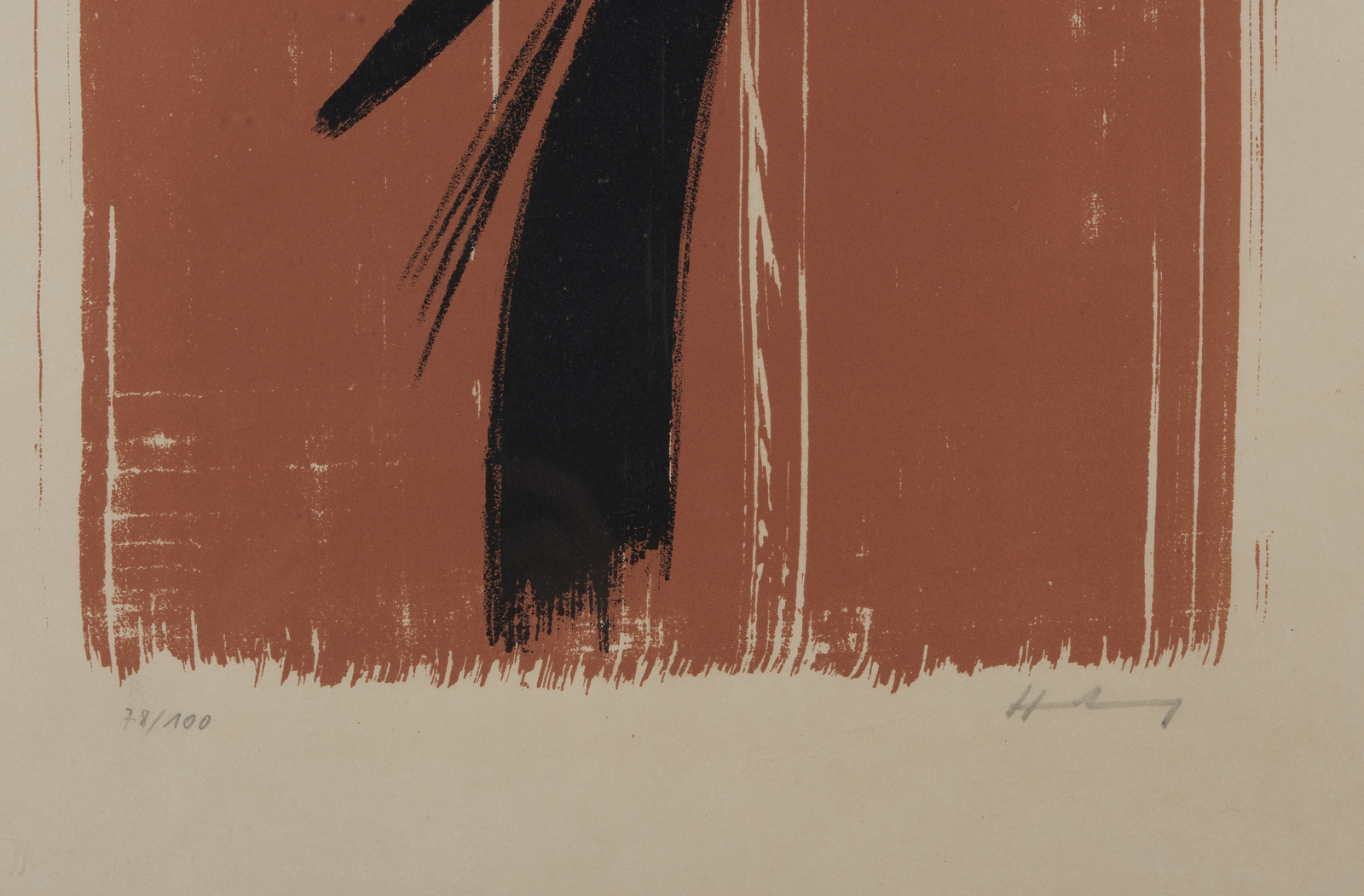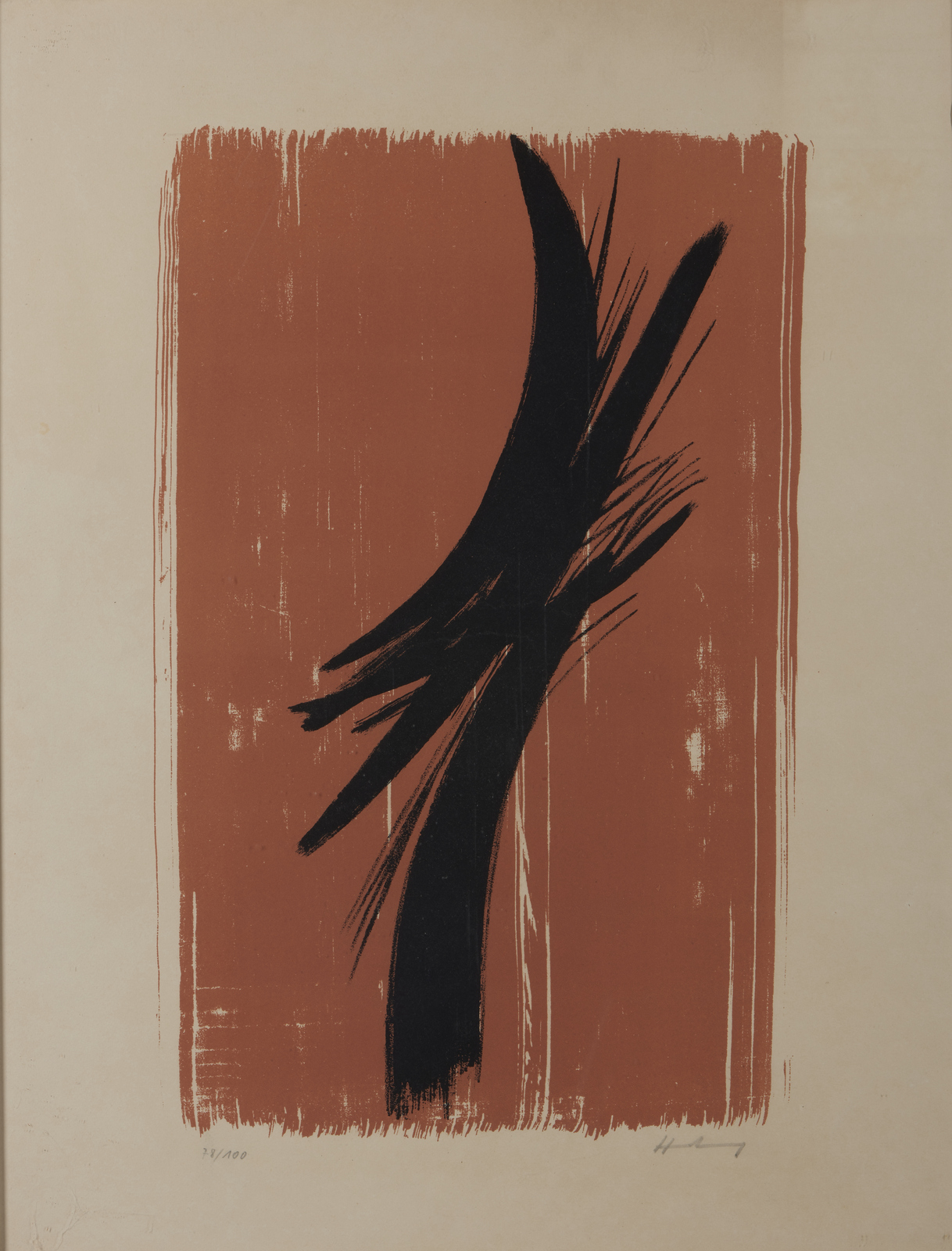 HARTUNG HANS (1904 - 1989) L 33 (III stato). 1957. Litografia. Cm 50,00 x 66,00. 78/100. Tiratura e firma in basso a matita. Carta BFK Rivers. Stampatore: Jean Pons, Paris. Editore: Galerie Ernst Beyeler, Bâle. Pubblicazione: Catalogue raisonné de l’œuvre imprimé de Hans Hartung of Rainer Michael Mason, RMM 109. Cornice presente