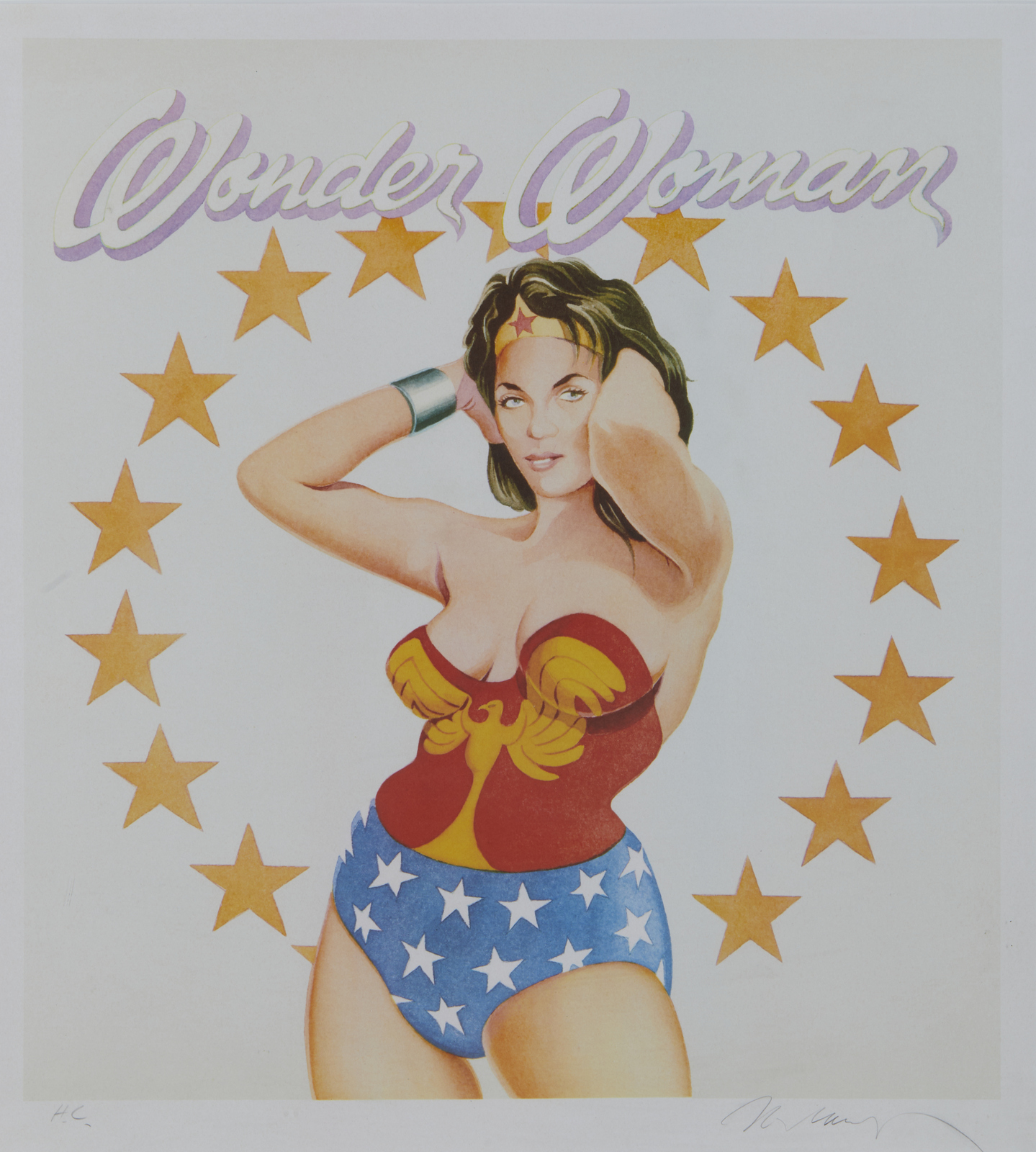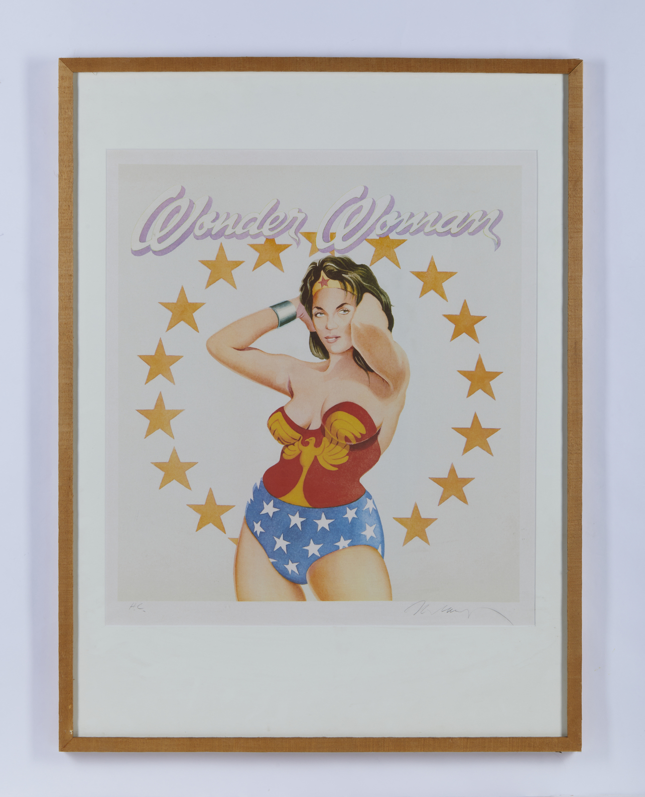 RAMOS MEL (n. 1935) Wonder woman. Litografia. Cm 68,50 x 92,00. H.C. Tiratura e firma in basso a matita. Carta Fabriano. Editore e stampatore: Plura Edizioni, Milano. Edizione totale: 60 esemplari + h.c. Foglio proveniente dalla cartella Six Girls (Wonder Woman. Chiquita. The Pause that Refreshes. Gardol Gertie. The Princess. Aqua Girl). Pubblicazione: Mel Ramos - Catalogue Raisonné of Original Prints, Édition en Anglais, 2020, n. 76-81. 1936-78/1979. Cornice presente