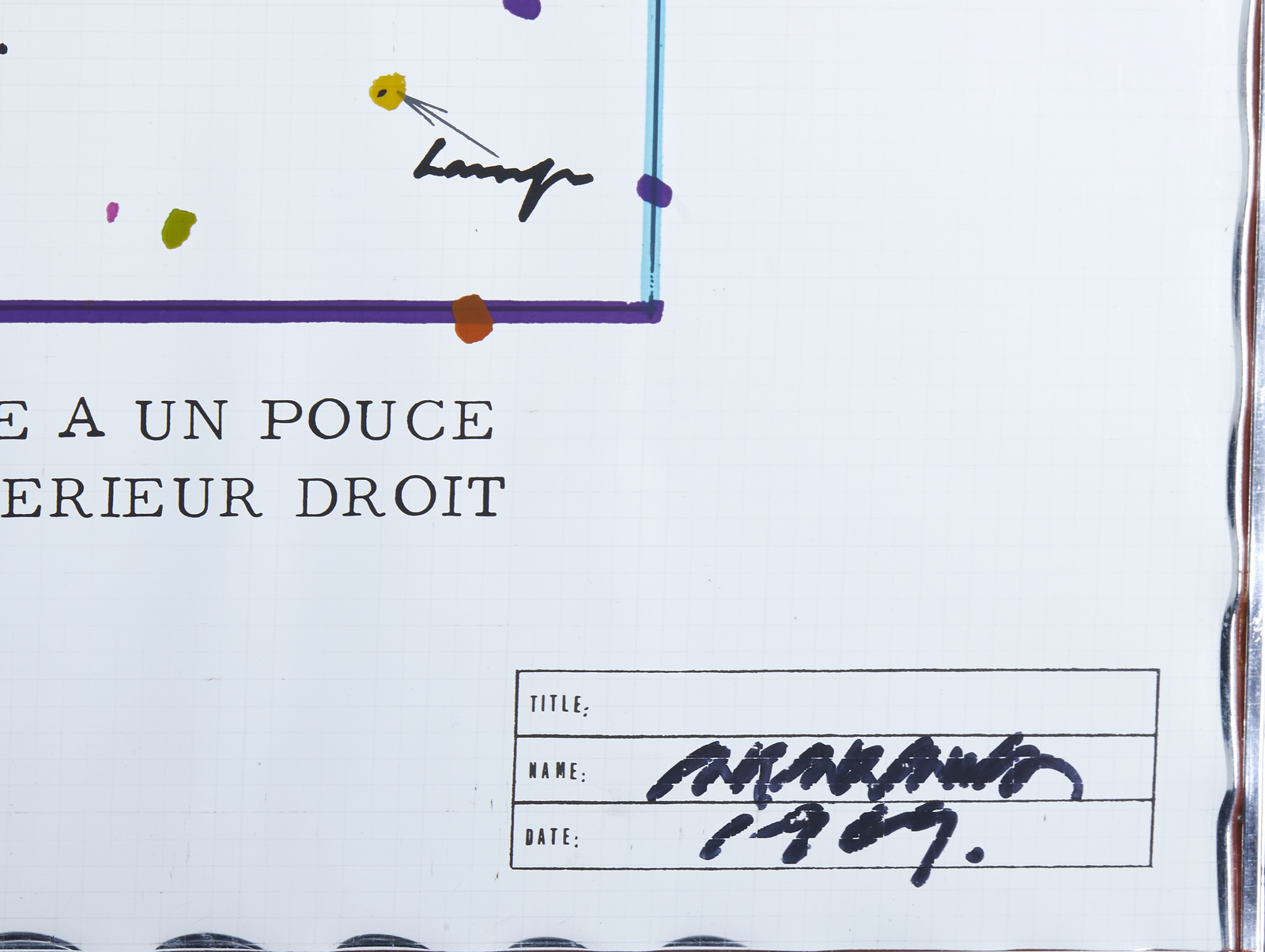 ARAKAWA SHUSAKU (1936 - 2010) Living room. 1969. Serigrafia su carta specchiante. Cm 73,70 x 61,00. 71/95. Tiratura, firma e anno in basso a pennarello. Al retro cartiglio e timbro Studio Oggetto, Caserta. Edizione totale: 95 esemplari + A.P. Lievi difetti. Cornice presente