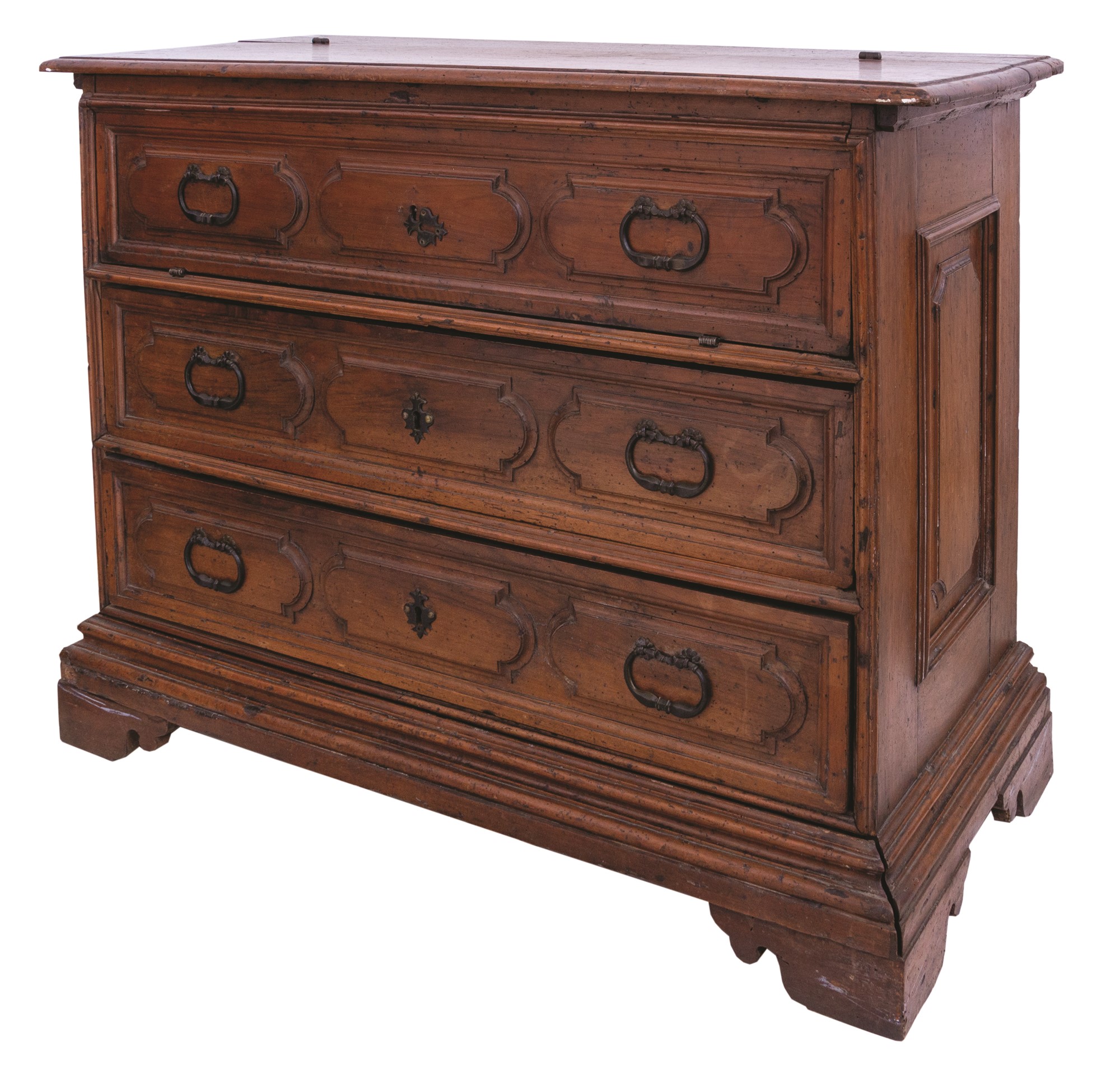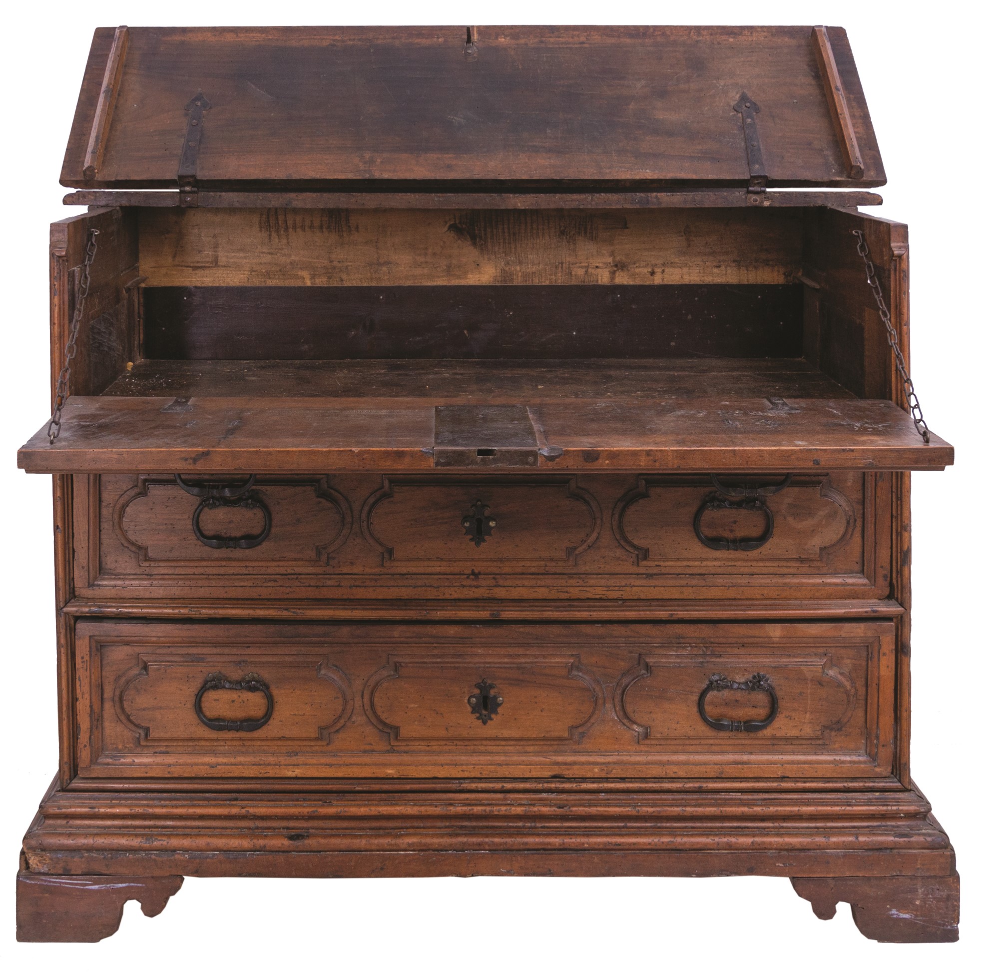 Cassettone a ribalta in noce. Centro Italia, XVII secolo