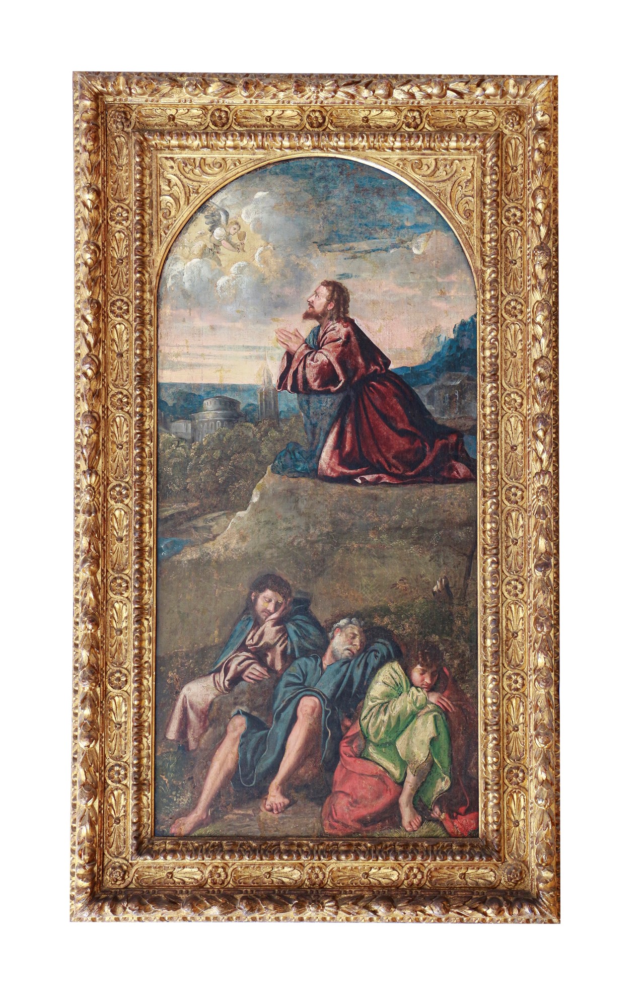 Il dipinto reca nella parte superiore Cristo intento a pregare nell'orto del Getsemani ed in quella inferiore, come indicato nei Vangeli sinottici, gli apostoli Pietro, Giovani e Giacomo che dormono.