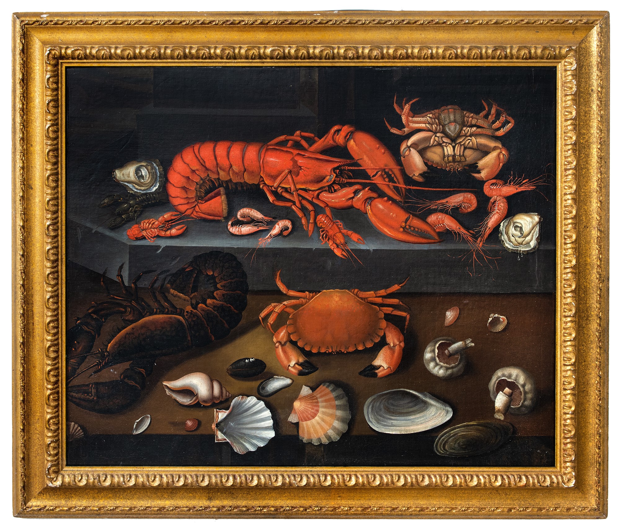 Francesco Codino (attribuito a) Natura morta con crostacei, funghi e conchiglie